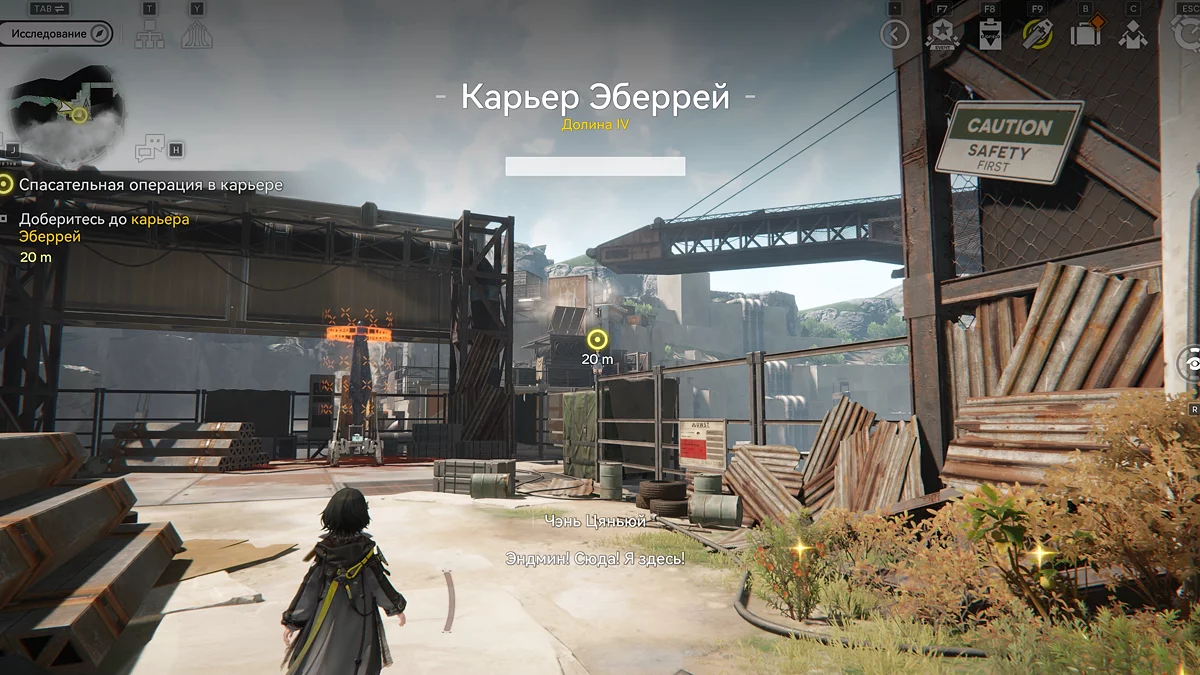 Чтобы отыскать путь к карьеру, телепортируйтесь в Общежитие рабочих и спуститесь по лестнице, затем войдите в небольшую комнату в левом углу с жёлтым баннером. Оттуда через Горную обходную тропу откроется вид на карьер. Идите прямо и пересеките огромную шахтёрскую пещеру. В конце туннеля мы окажемся на Эббрей и встретим Чэнь Цяньюй. Поговорите с ней и переходите к следующей задаче.