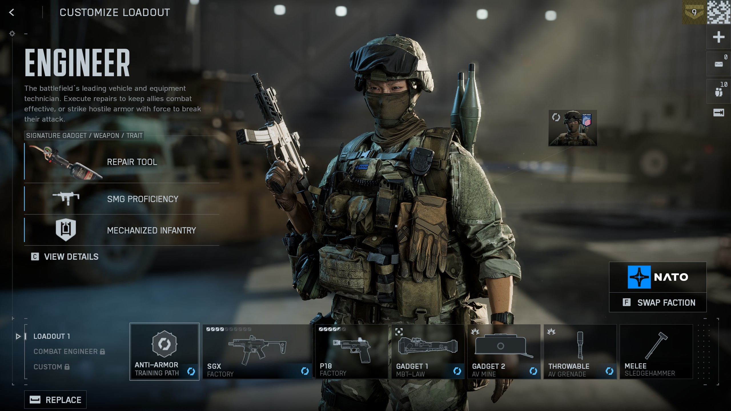 - Перк Mechanised Infantry: получает меньше урона от взрывов, находясь рядом с союзной техникой, и мешает противнику занять её, если вы её чините.