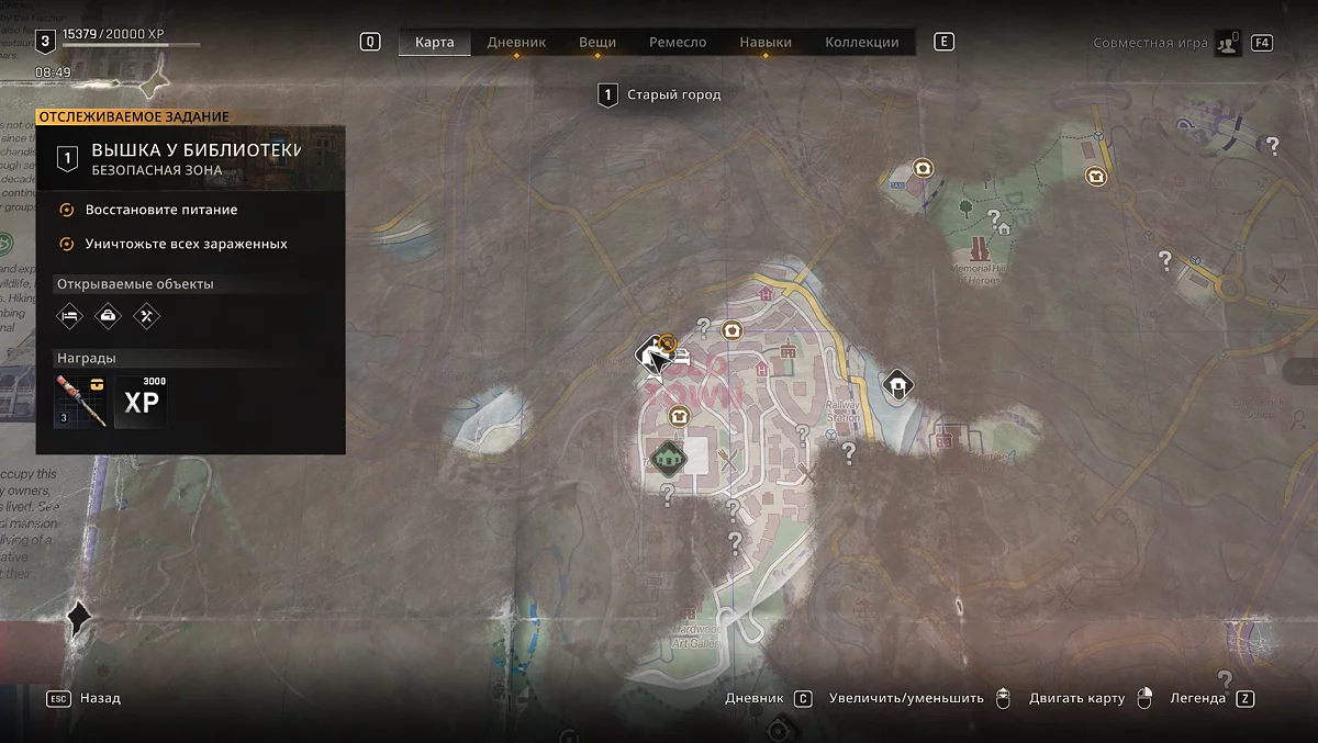 Вышка у библиотеки — одна из наиболее заметных отметок на карте. Она расположена в Старом городе, чуть севернее Ратуши и рядом с библиотекой, связанной с сюжетной линией игры.