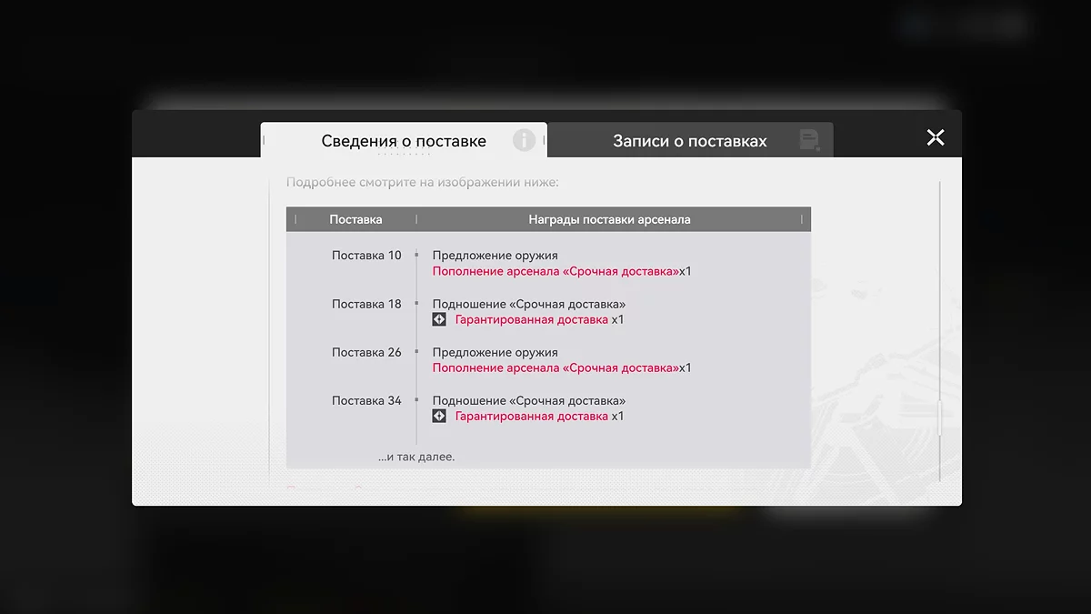 Дополнительно на сотой крутке срабатывает система «Пополнение арсенала». Она выдаёт специальный набор, позволяющий выбрать любое шестизвездочное оружие из списка, кроме баннерного.