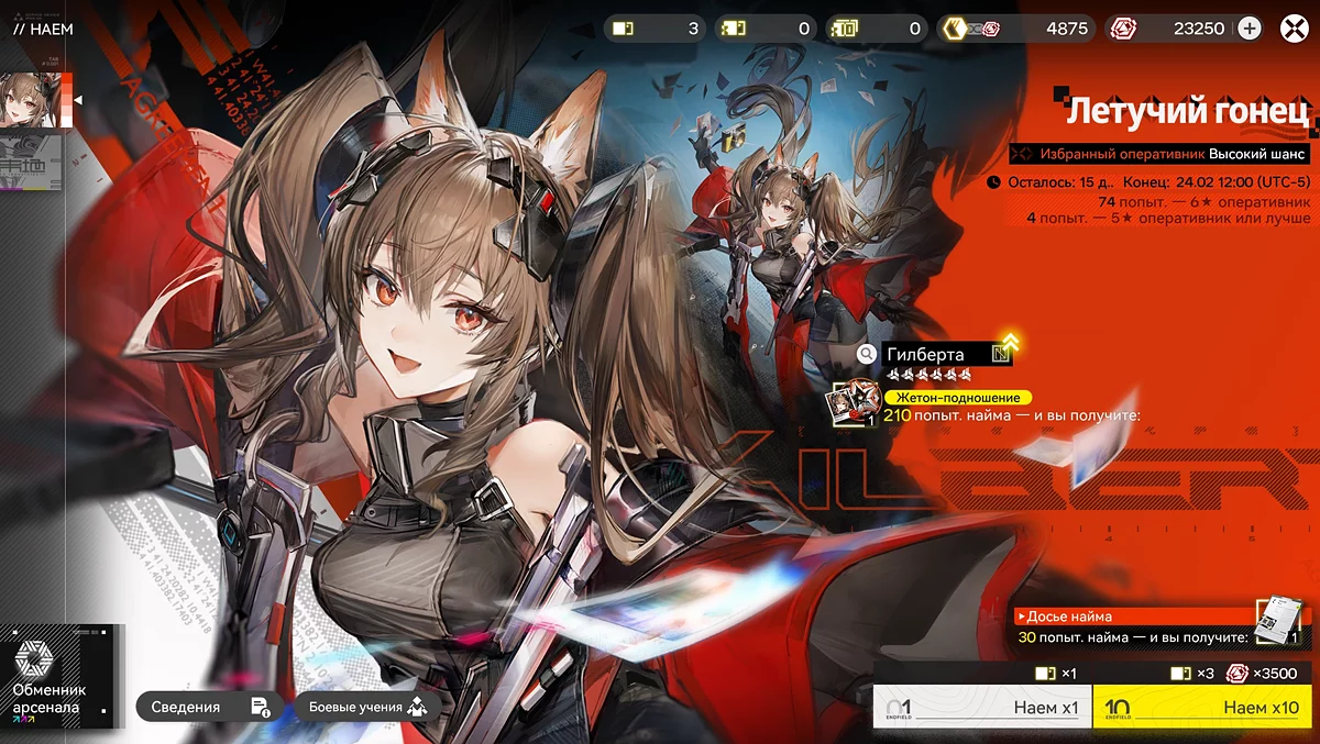 После 60 круток на лимитированном баннере вы получаете «Досье найма», дающее возможность сделать десять бесплатных прокрутов на следующем лимитированном баннере. Выдаётся только один раз за баннер; использовать его необходимо строго на следующем лимитированном баннере; сохранить на будущее нельзя — при неиспользовании сгорает.