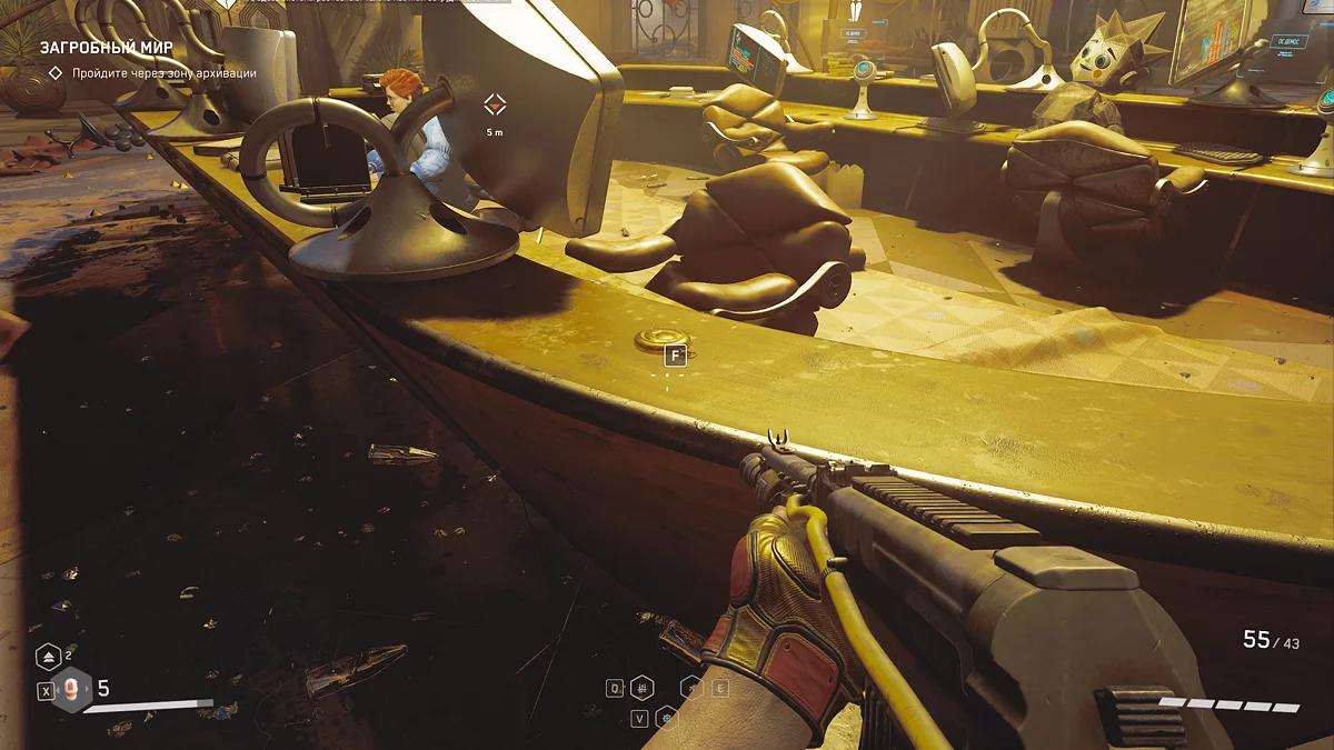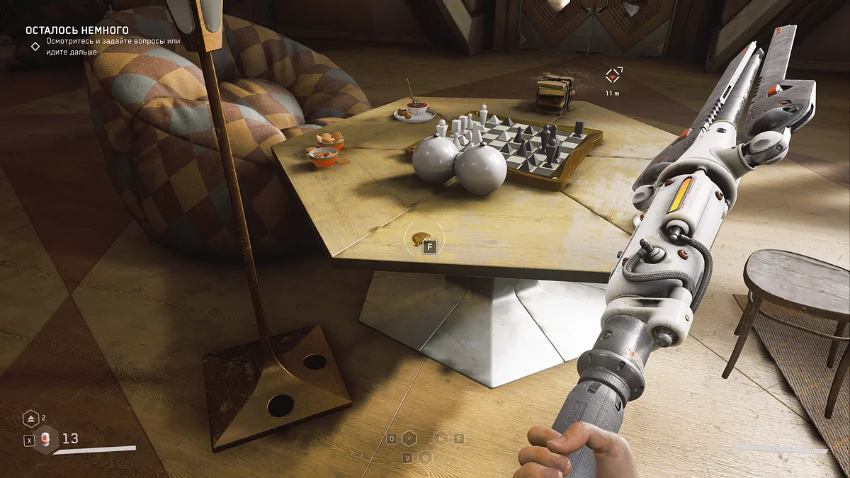 После создания полиморфного тела для Насти и прохождения нескольких помещений вы окажетесь в большом зале, где вскоре начнётся масштабное сражение с роботами ⚔️. Прежде чем пройти через открывшиеся ворота, осмотрите перила лестницы и заберите коллекционный предмет.