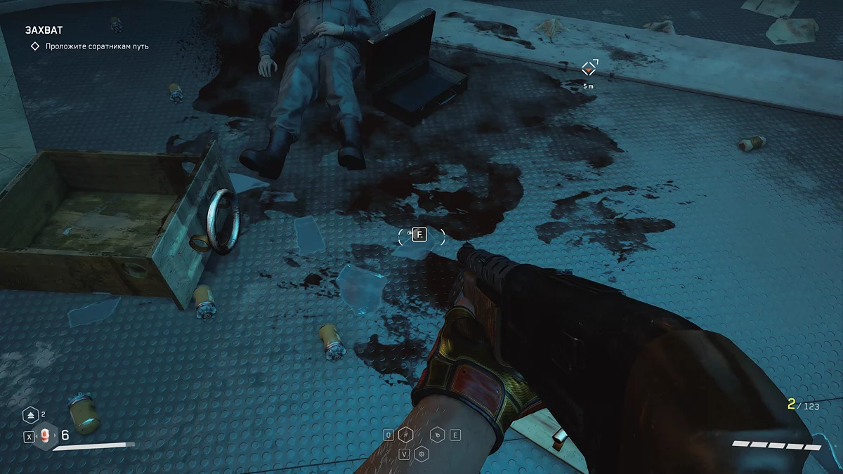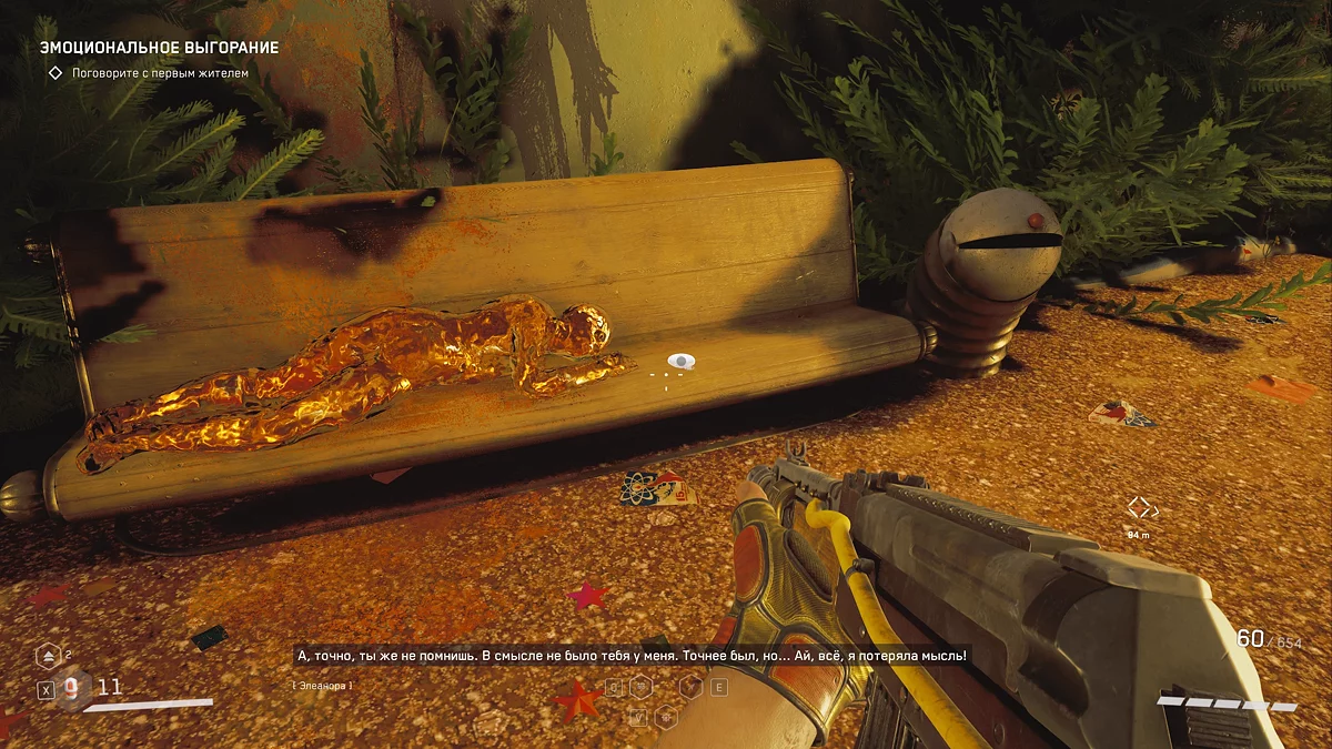 Добравшись до места встречи с Николаем и Охотником 🎯, первый начнёт излагать план по переносу ядра для создания бомбы. В том же коридоре, после катсцены, подойдите к трупу робота и заберите из его руки восемнадцатый щебетарь.
