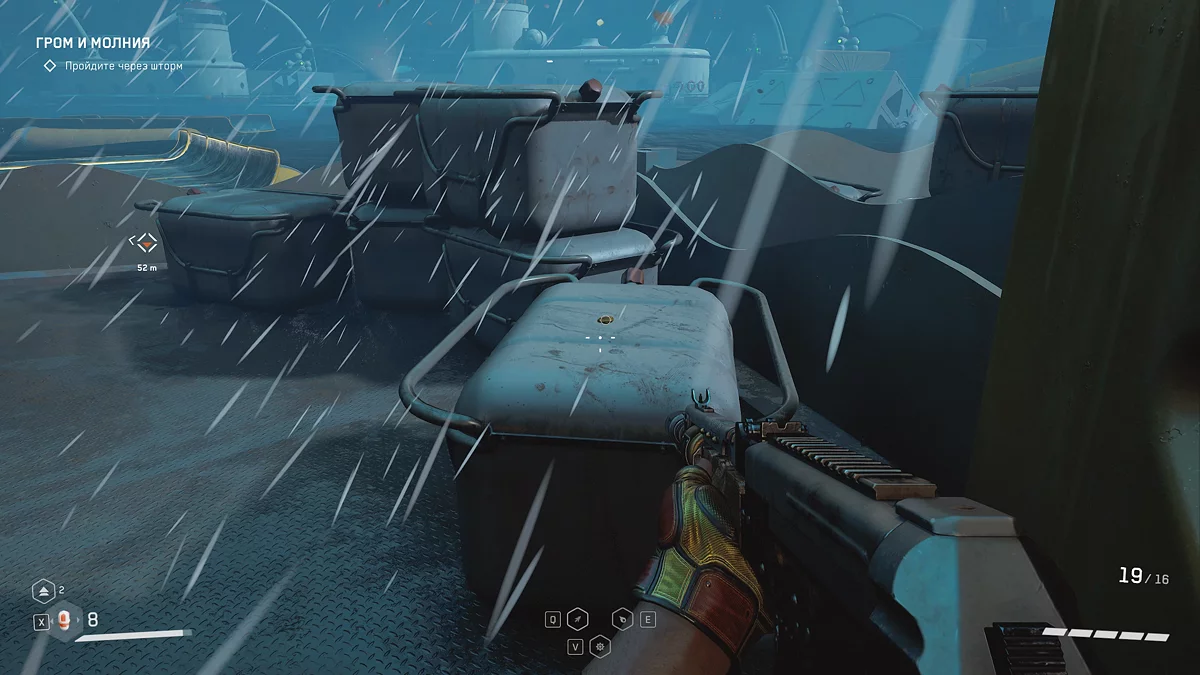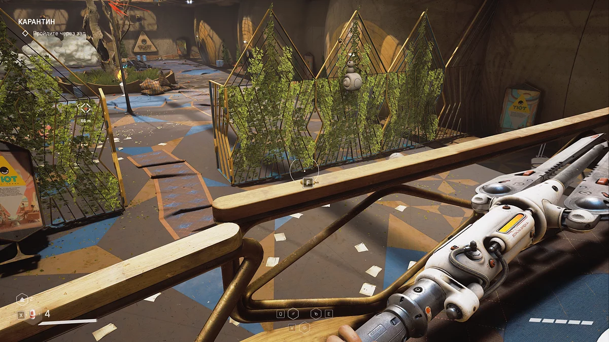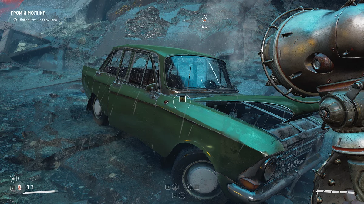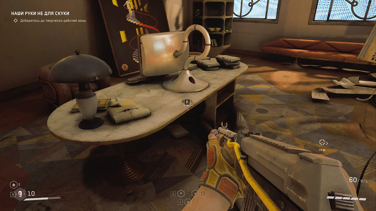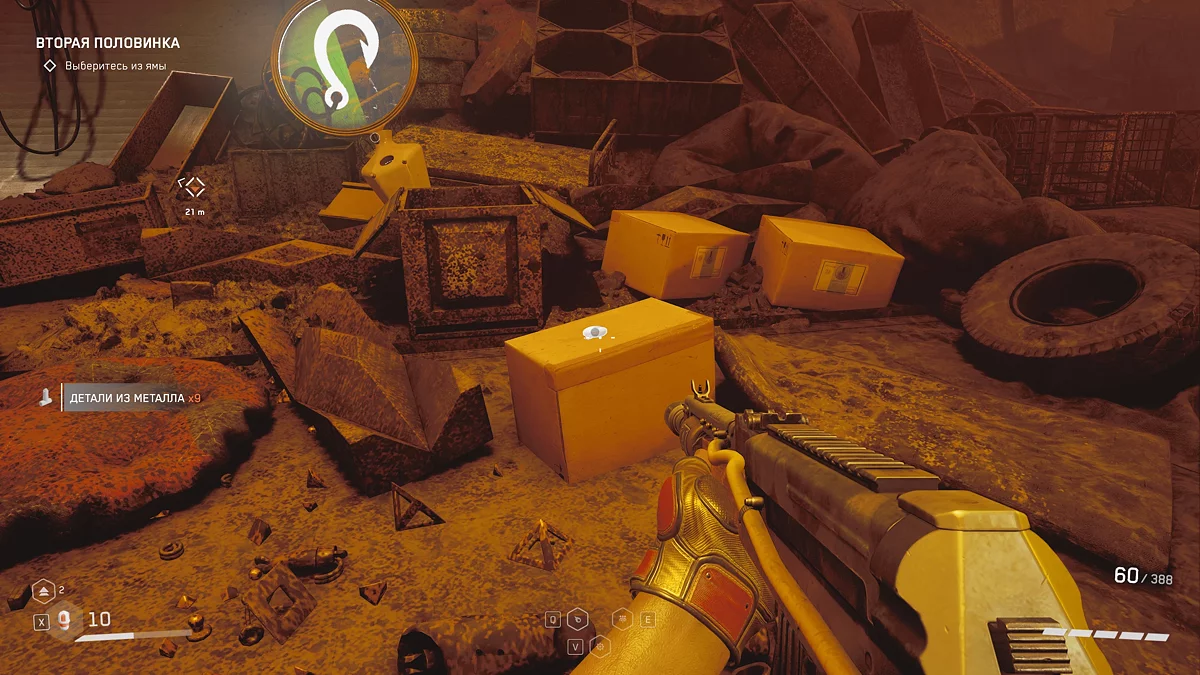 В производственном цехе пройдите сквозь массивные прессы и решите серию из трёх головоломок с электро-пилонами ⚡. Затем минуйте железные ворота и запустите разговор с женой майора. После этого проследуйте в небольшую дверь, начав задание «Холодный приём». Как только увидите эту надпись, обернитесь налево и заберите щебетарь с края ящика.