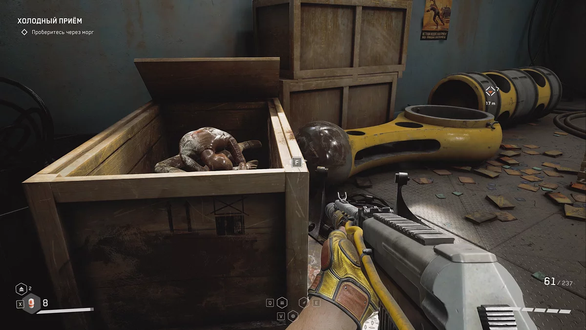 После победы над Близняшкой 👯 Нечаев рухнет в ядро комплекса. Там поверните голову налево и поднимите щебетарь с верхней части коробки.