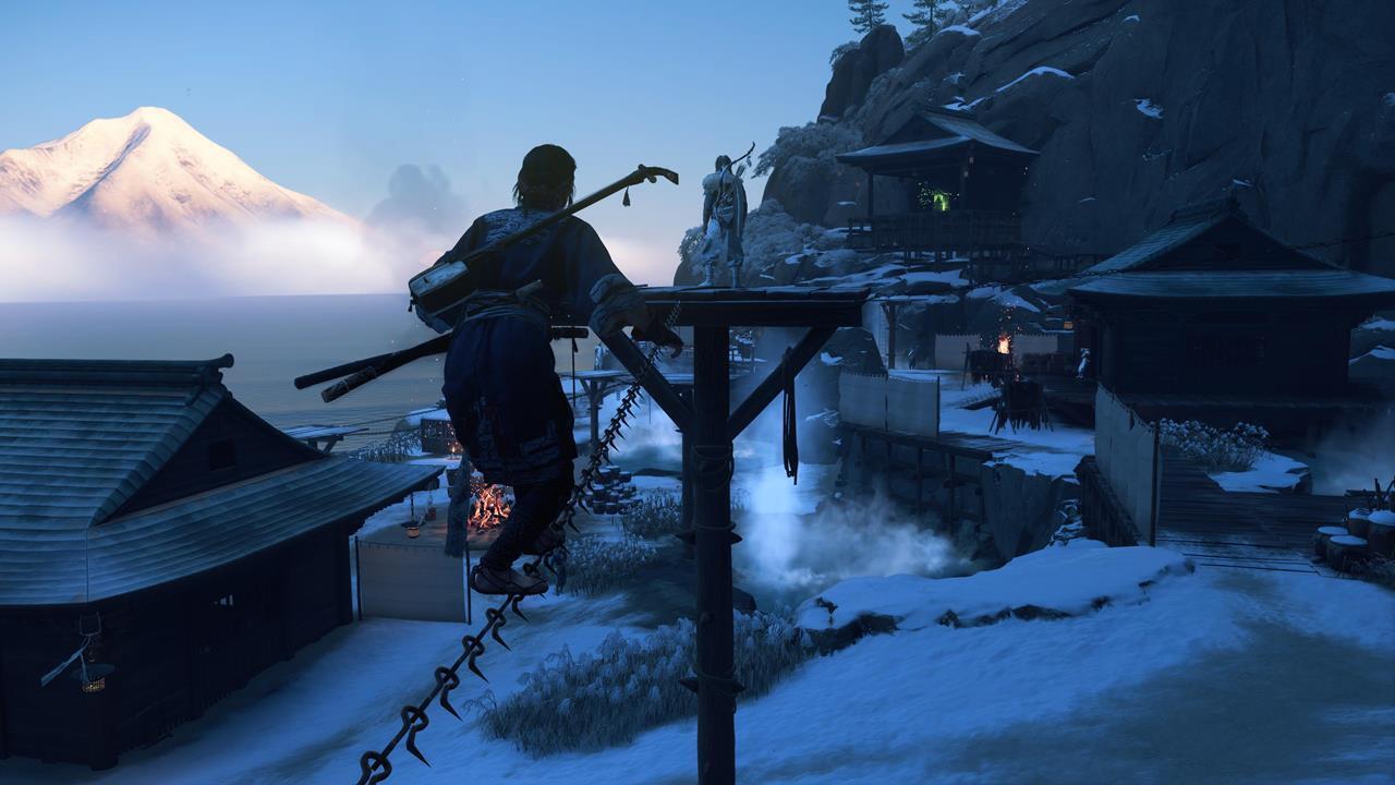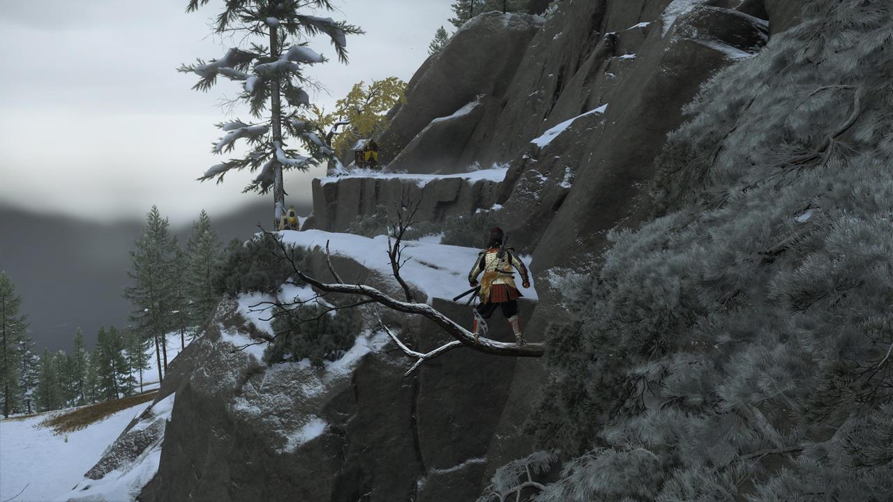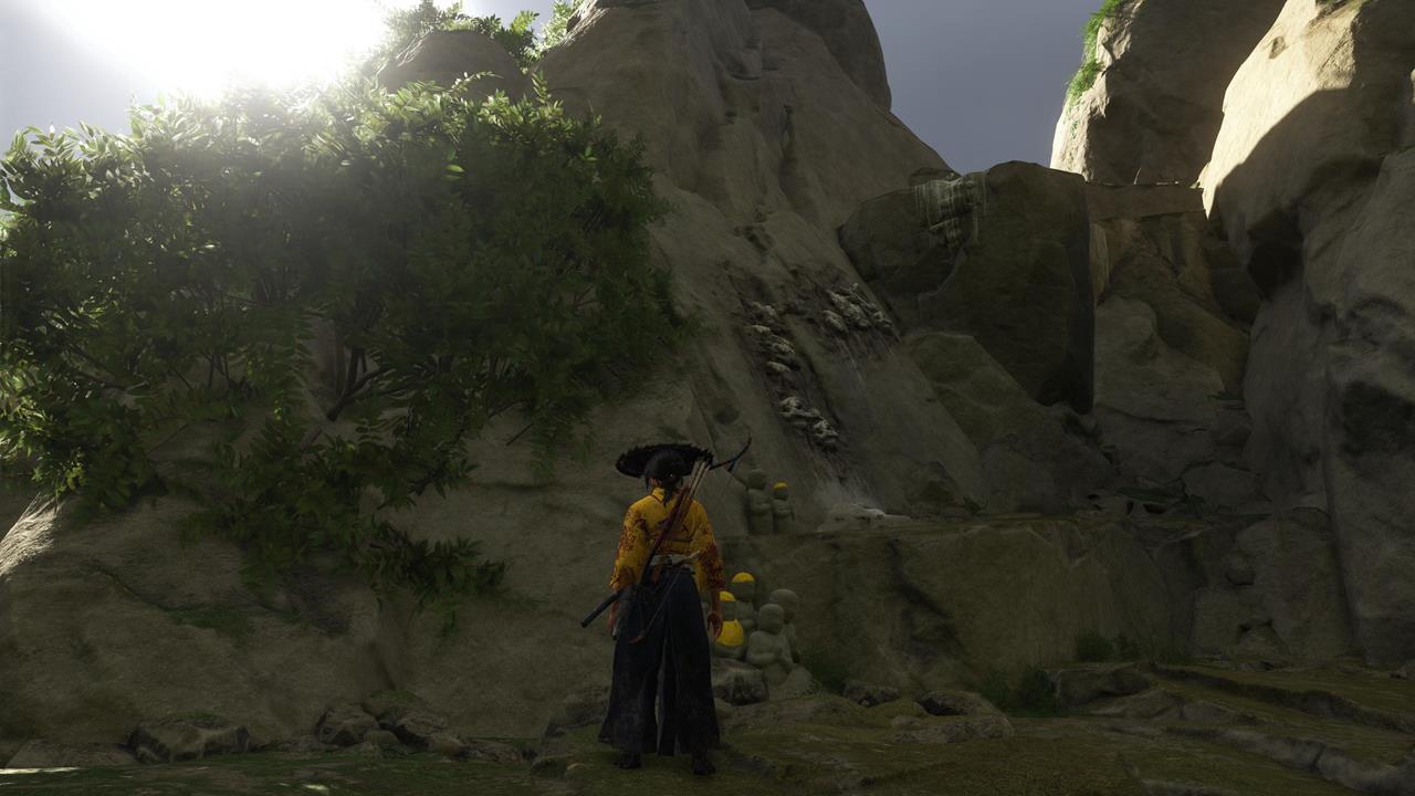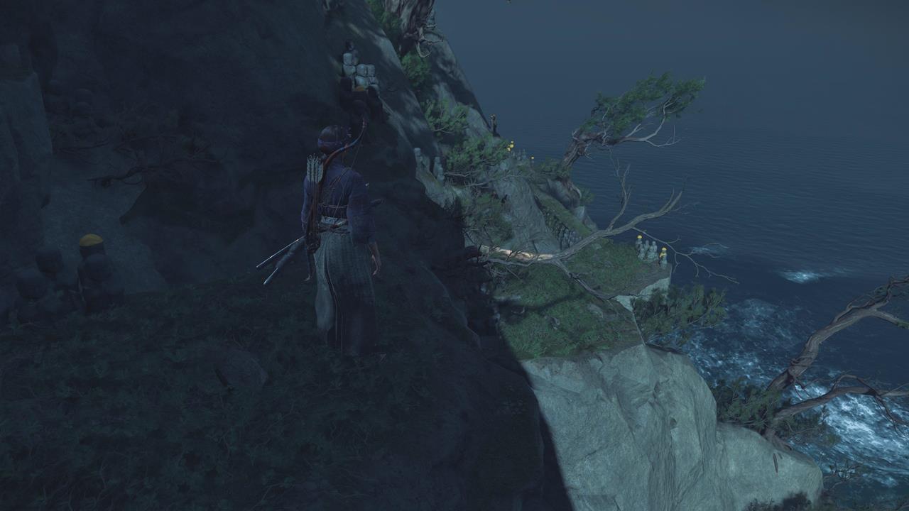 Ещё одна святыня расположена в северо-западном углу равнины Исикари. Доберитесь до крепости Дзигоку, найдите точку захвата у обрыва и продвигайтесь по карнизам, пока не окажетесь у Алтаря с видом на море 🌊.