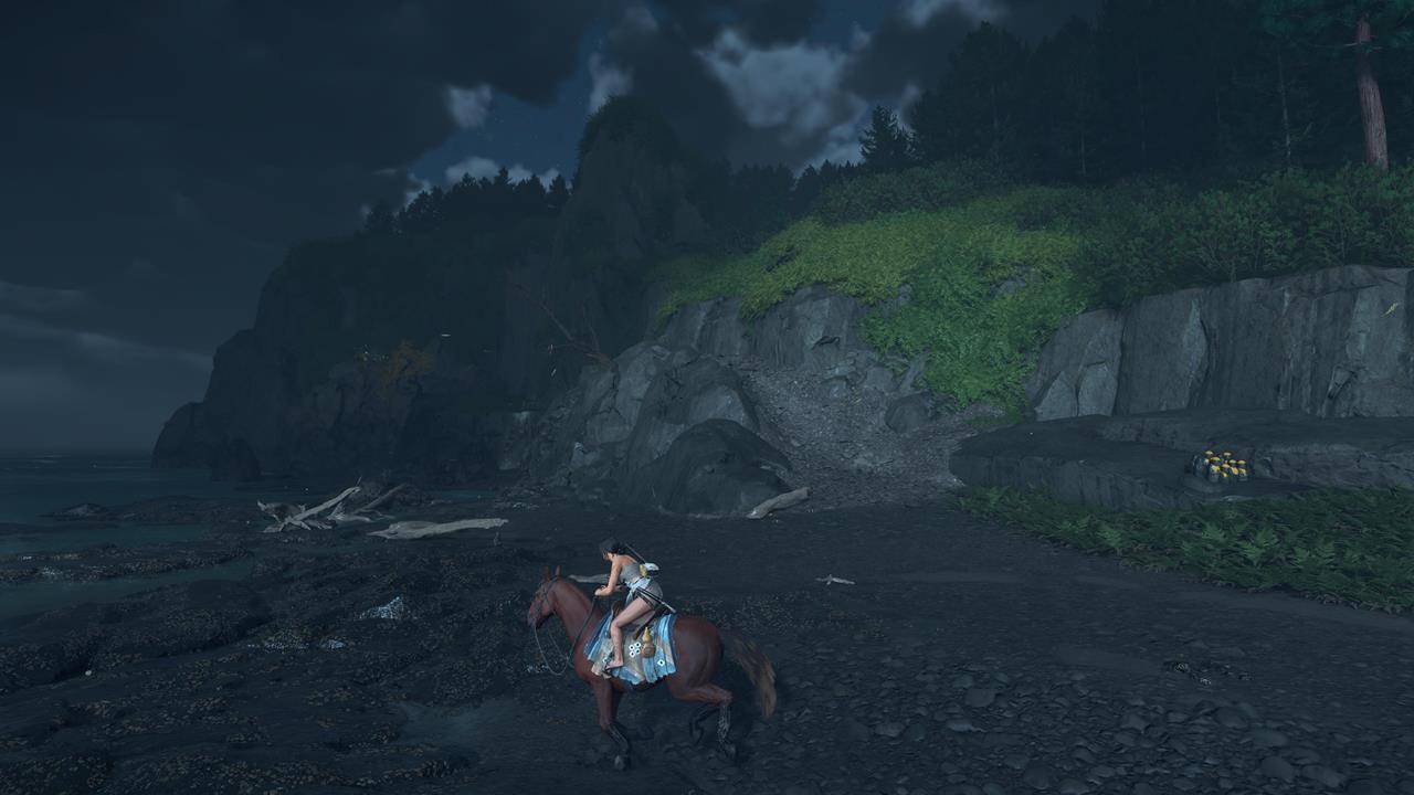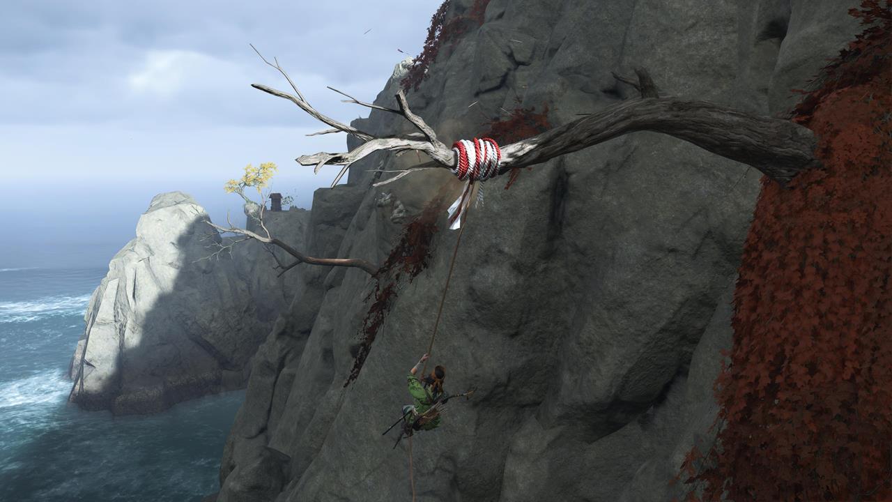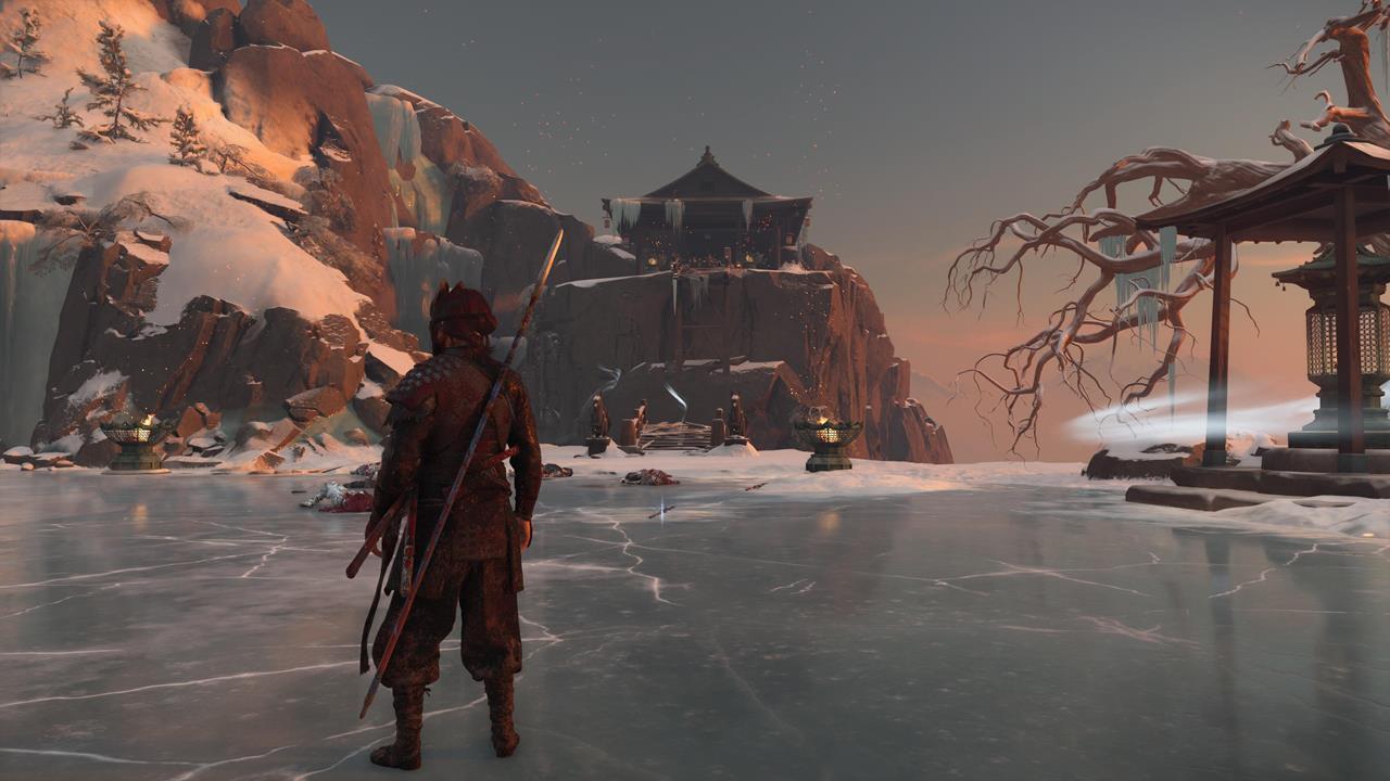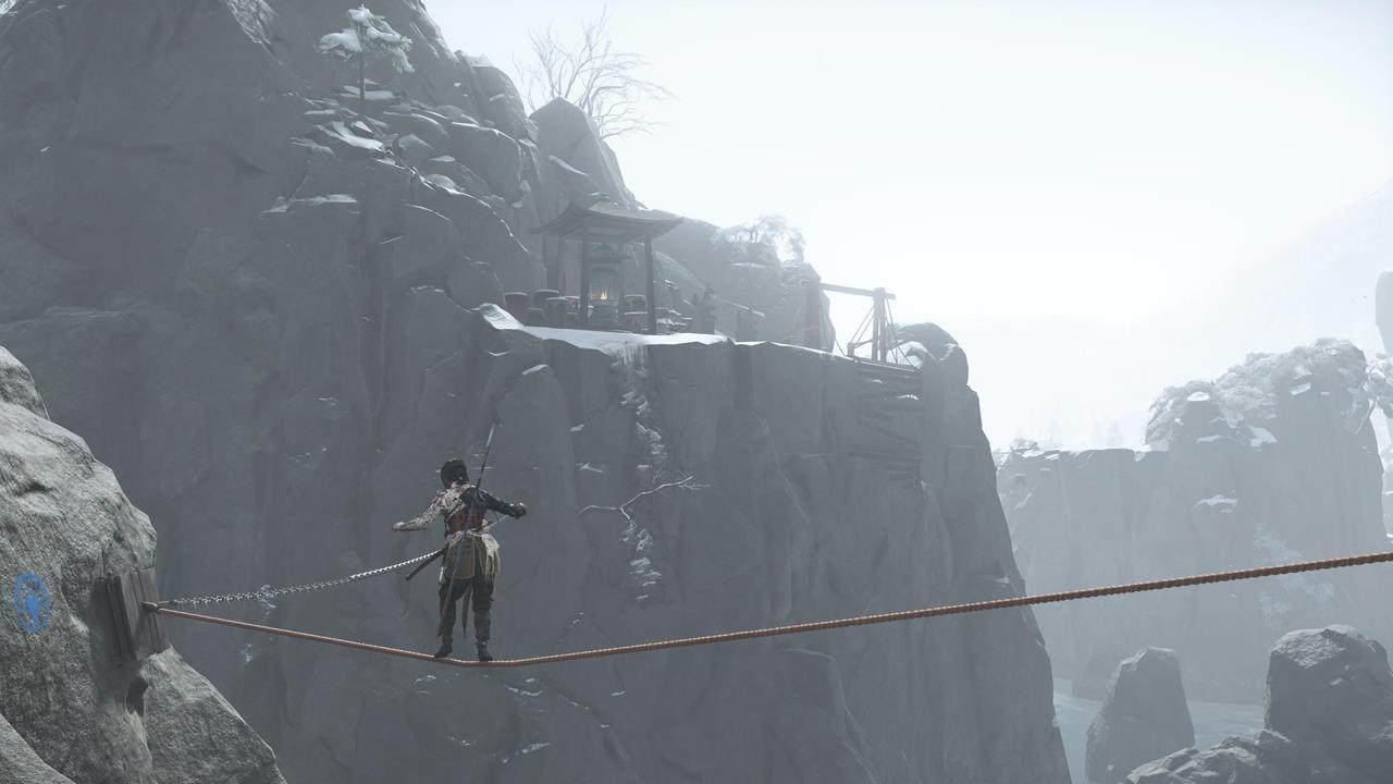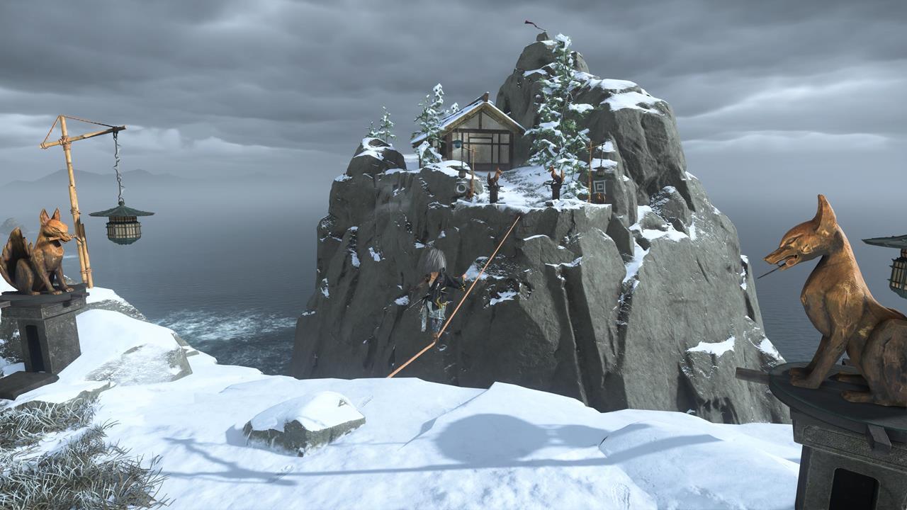 Ещё одна святыня расположена в северо-западном углу равнины Исикари. Доберитесь до крепости Дзигоку, найдите точку захвата у обрыва и продвигайтесь по карнизам, пока не окажетесь у Алтаря с видом на море 🌊.