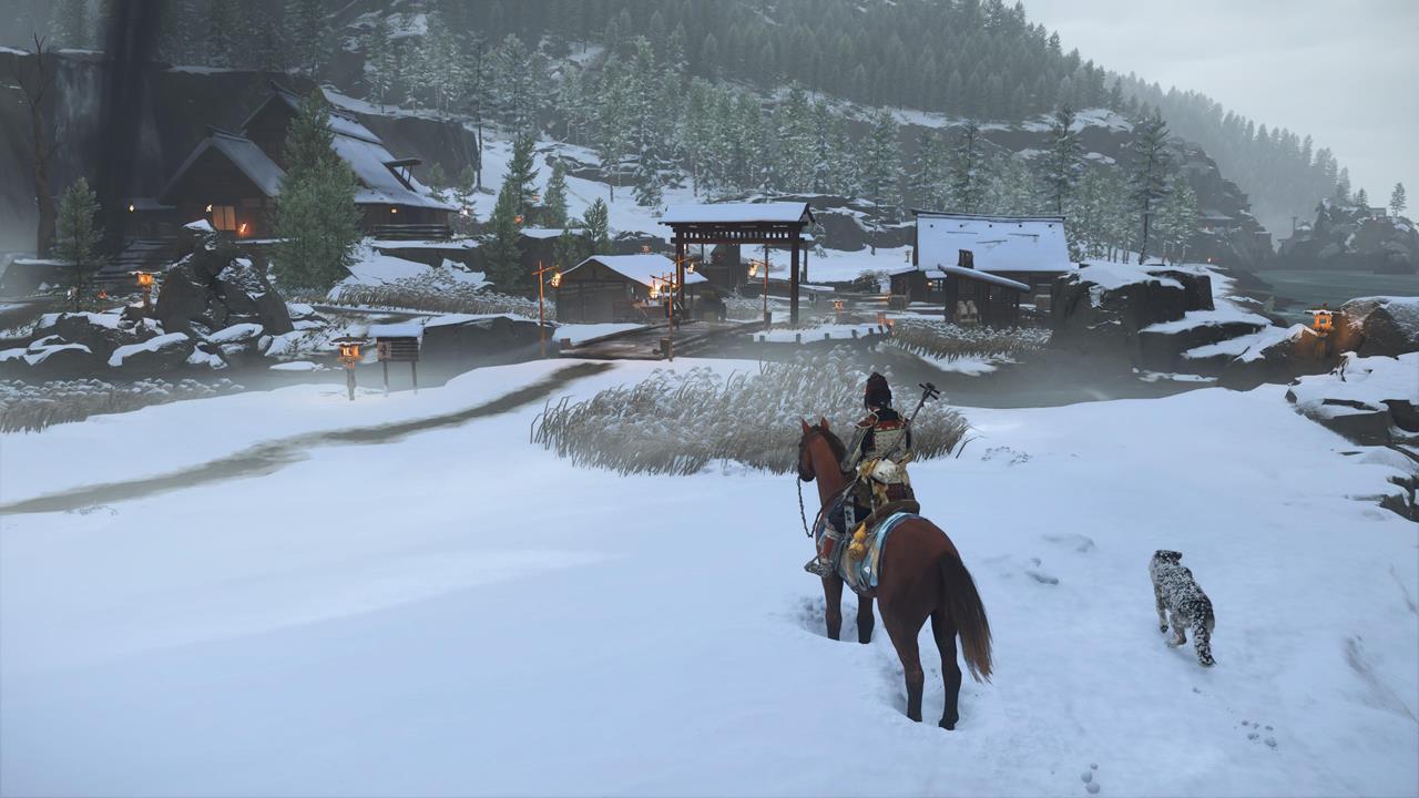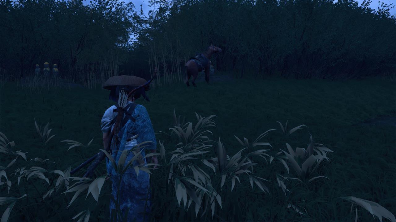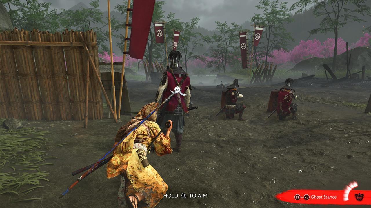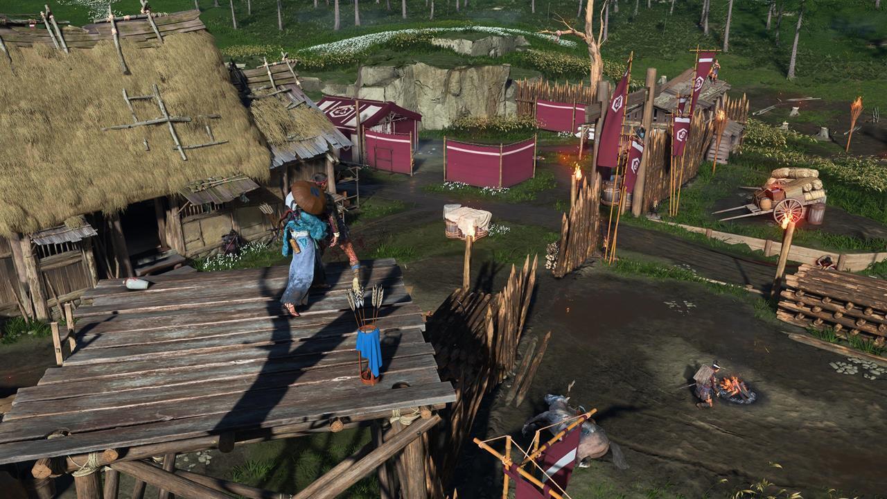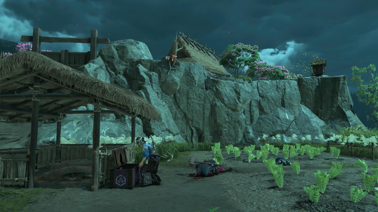 Зачистите деревню Мияма на севере Осимы 🏘️. Здесь же можно выполнить заказ охотника за головами Кодзиро — убить Тадааки Ужасного; он оставит новый скин для Волчьего клинка.