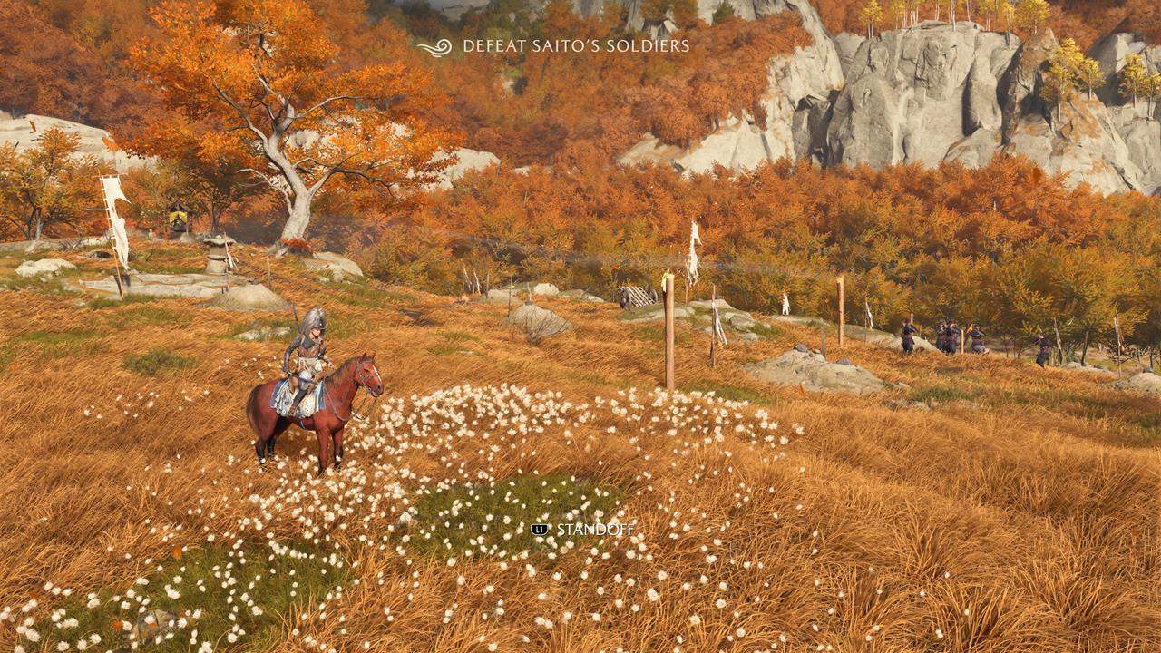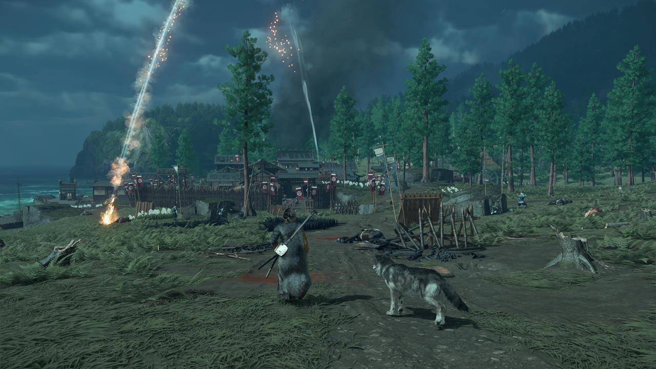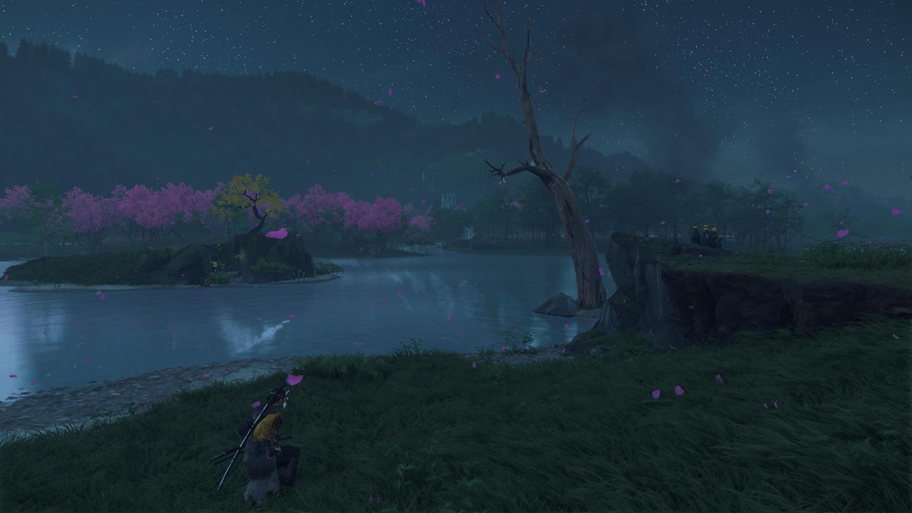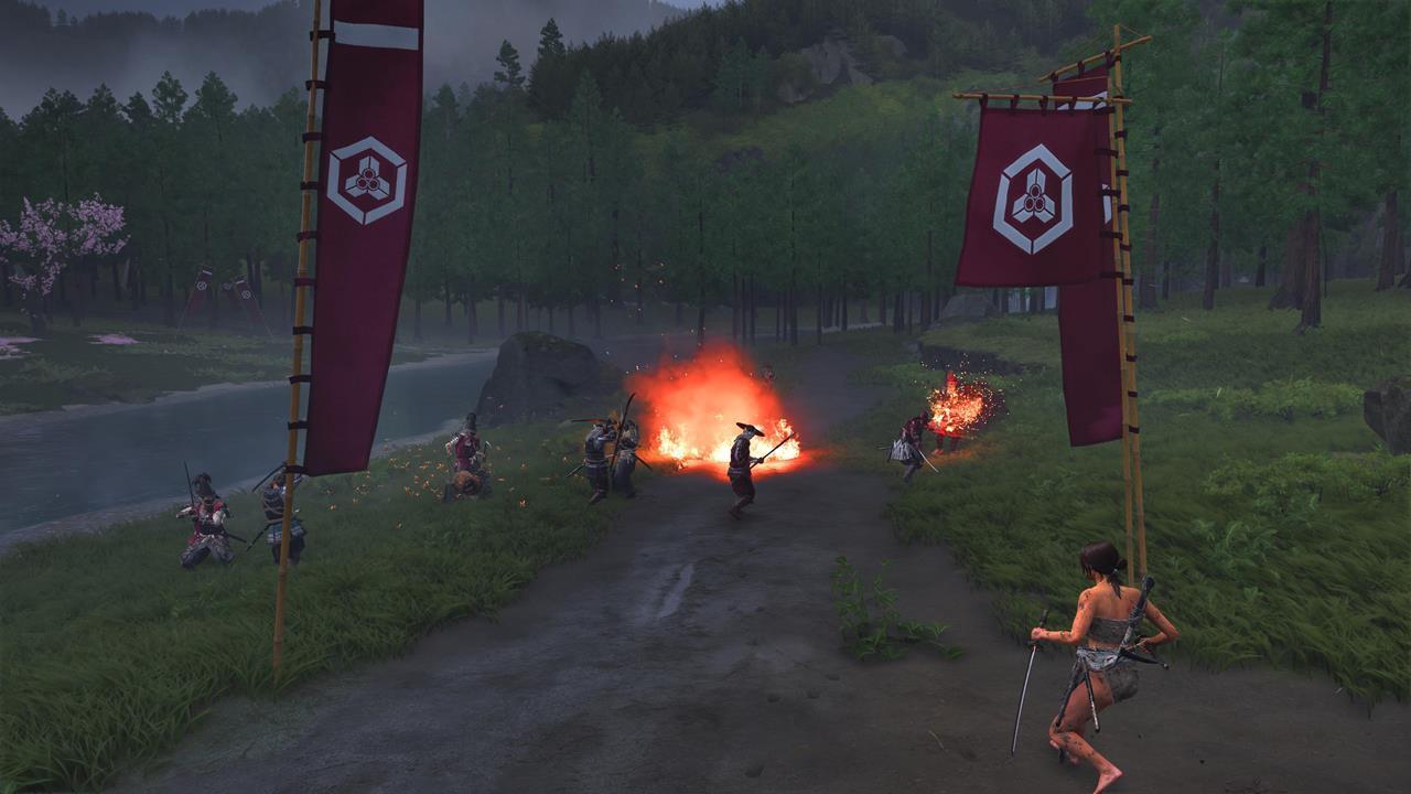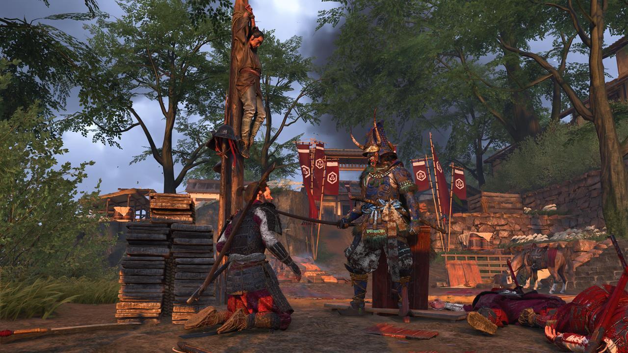 Зачистите деревню Мияма на севере Осимы 🏘️. Здесь же можно выполнить заказ охотника за головами Кодзиро — убить Тадааки Ужасного; он оставит новый скин для Волчьего клинка.