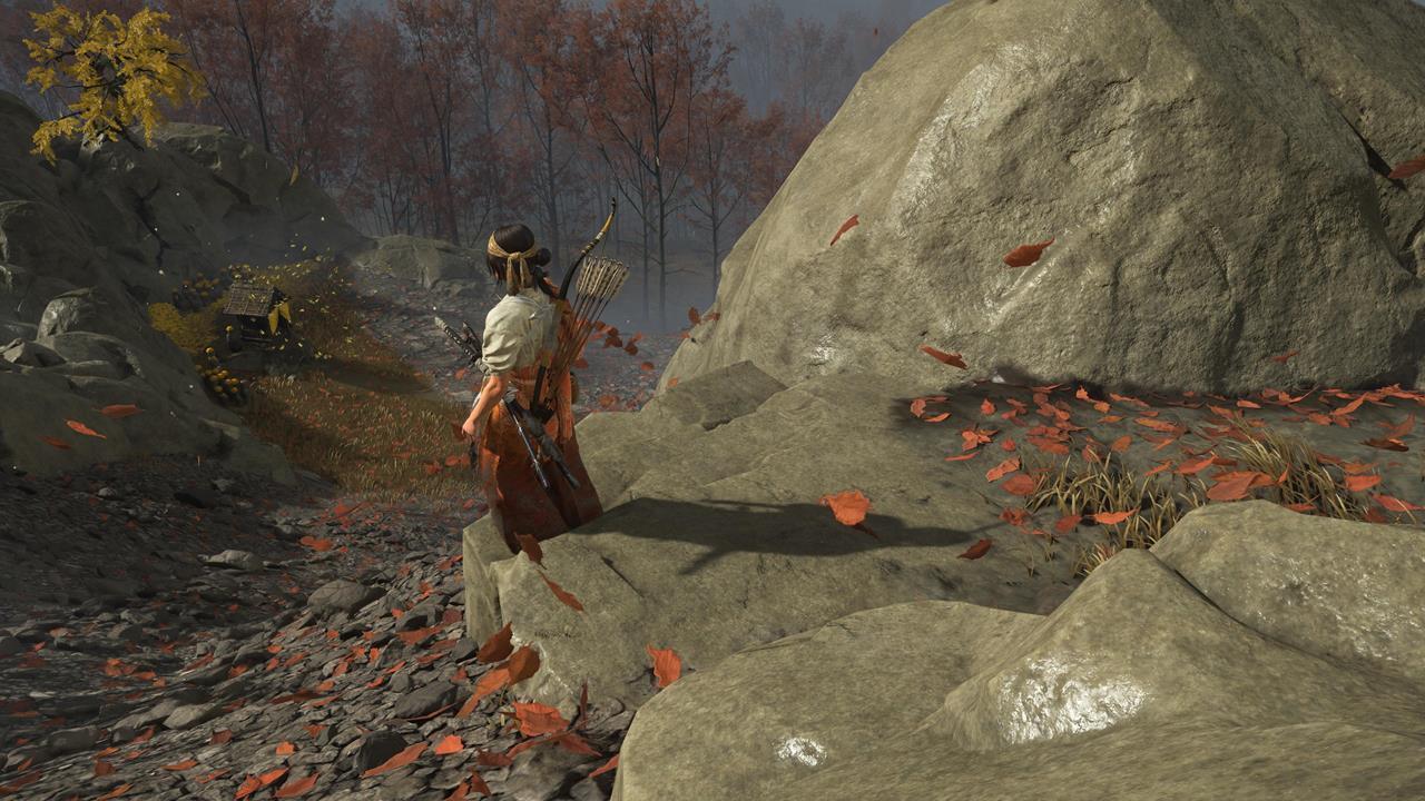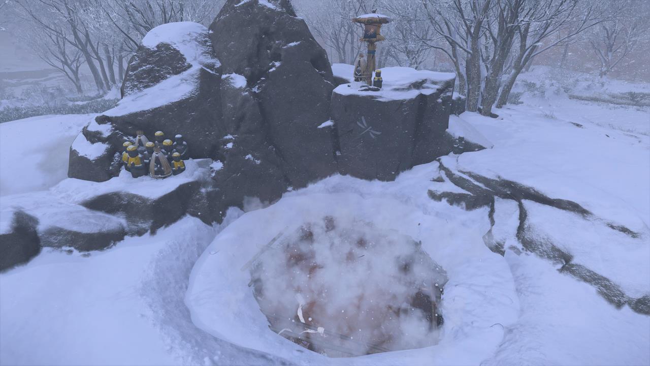 В районе Саробэцу есть ещё одна любопытная точка, расположенная рядом с убежищем Лисьих Хвостов. Увидев миниатюрные статуэтки, подойдите к возвышению — земля обвалится 💥. Алтарь для размышлений спрятан в этой подземной яме.