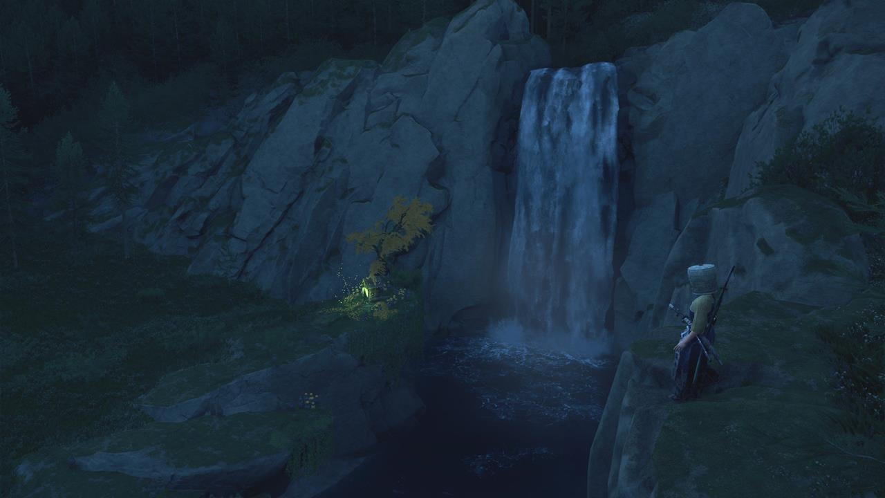 Ещё один Алтарь для размышлений расположен к северо-востоку от Старого трактира — неподалёку от горячего источника, улучшающего здоровье ♨️. Поднимитесь на плато, чтобы выйти к источнику, затем воспользуйтесь пологой тропой на противоположной стороне. Спускаясь, будьте готовы ухватиться за ветку и перепрыгнуть через расселину — так вы доберётесь до святыни.