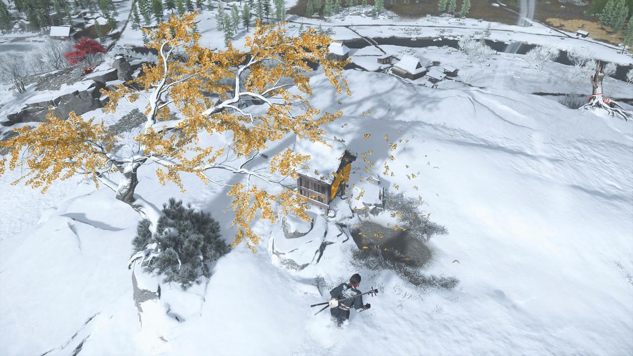 Ещё одна святыня находится к востоку от кузницы Смелого Кадзи — на вершине холма с деревом из золотых листьев 🍂. Поднимайтесь наверх и молитесь у алтаря.