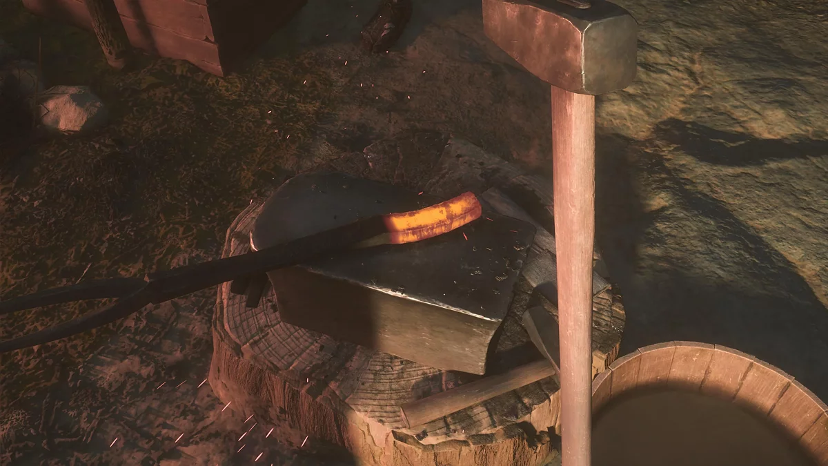 Сначала подойдите к кузнице и верните Ацу в прошлое. Отец героини кует меч и предложит помочь. Процесс ковки в Ghost of Yotei проще, чем в Kingdom Come: Deliverance 2 — следуйте подсказкам отца. Трясите геймпад вверх-вниз, чтобы бить молотом; «круг» — переворот лезвия для корректировки. Когда заготовка остынет, жмите «квадрат» и дождитесь ярко-оранжевого свечения, затем продолжайте ковку, превращая металл в самурайский клинок.