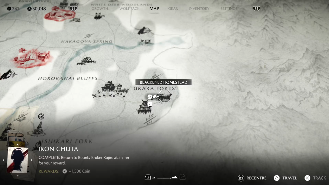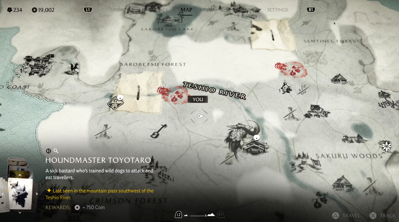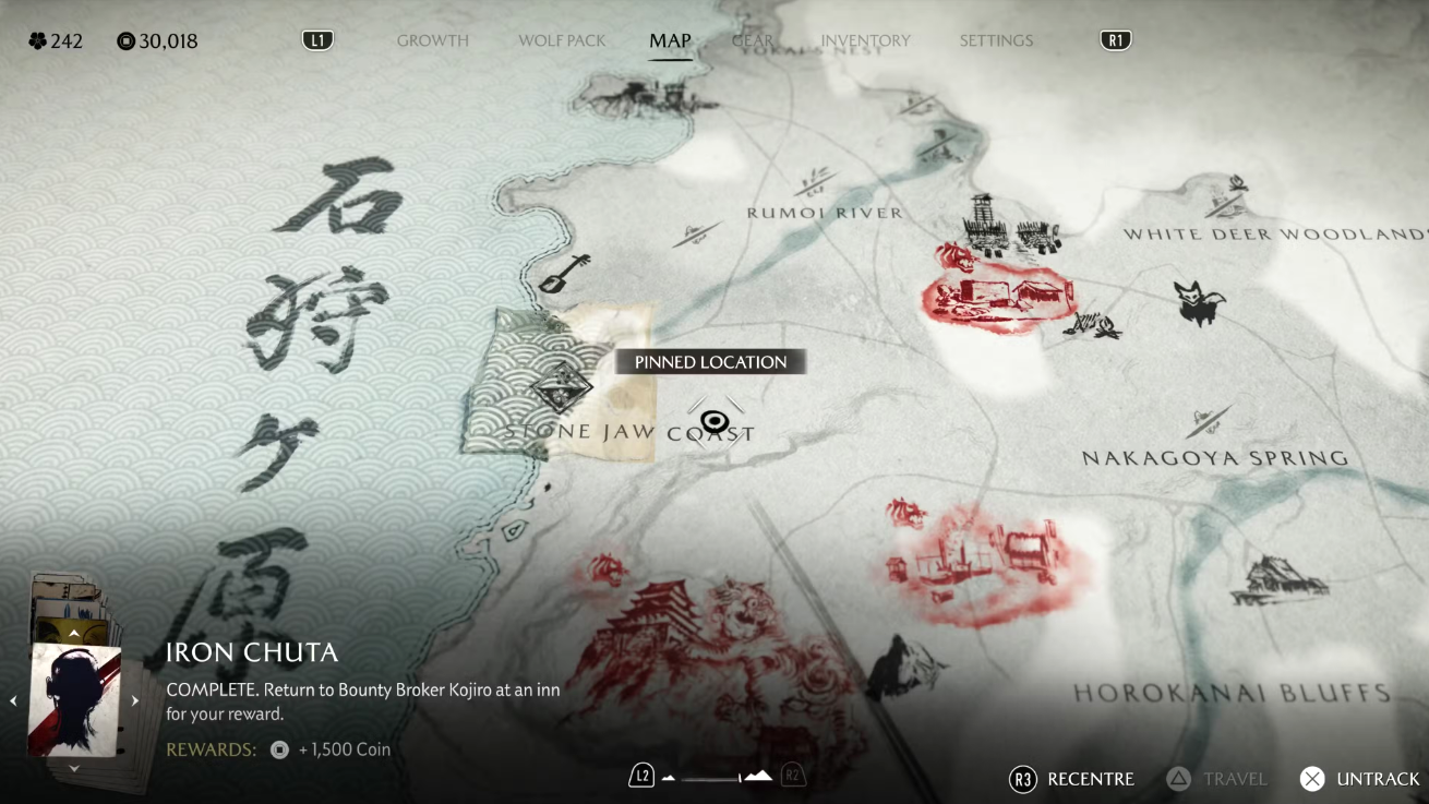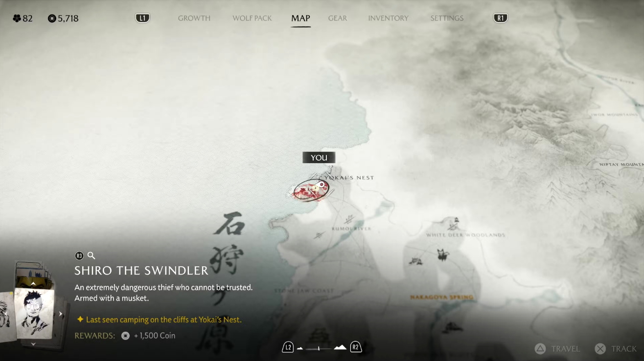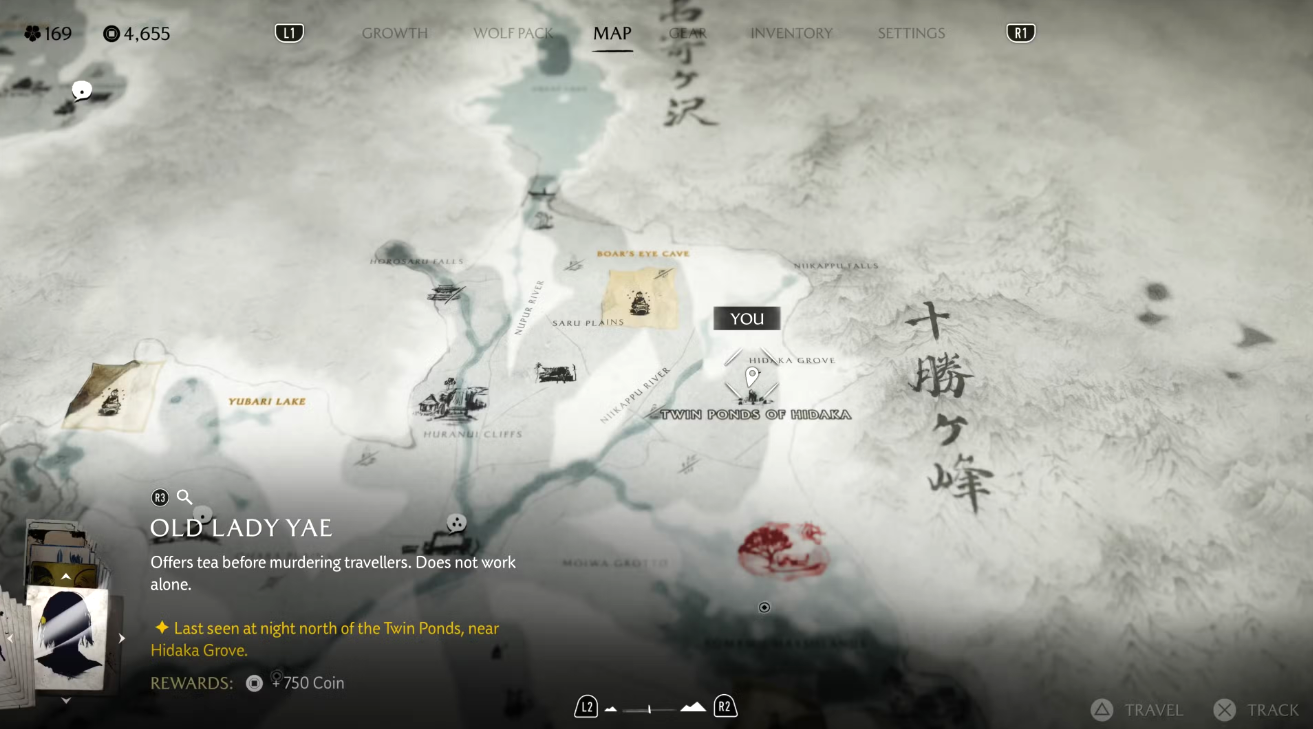 На доске объявлений замка Мацумаэ появится знакомый плакат с небрежно нарисованными очками. Чтобы начать задание, направляйтесь к югу от реки Оёбэ, к побережью, где вас встретит ронин. Он направит вас дальше — к югу от берега Хакодатэ, к дому Дикого Горо. Следуйте по цепочке заданий, чтобы завершить охоту и получить награду.