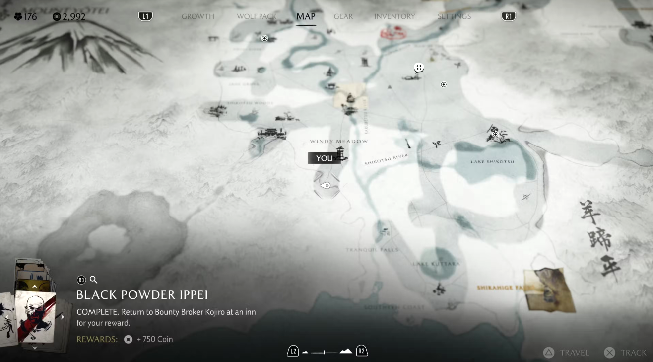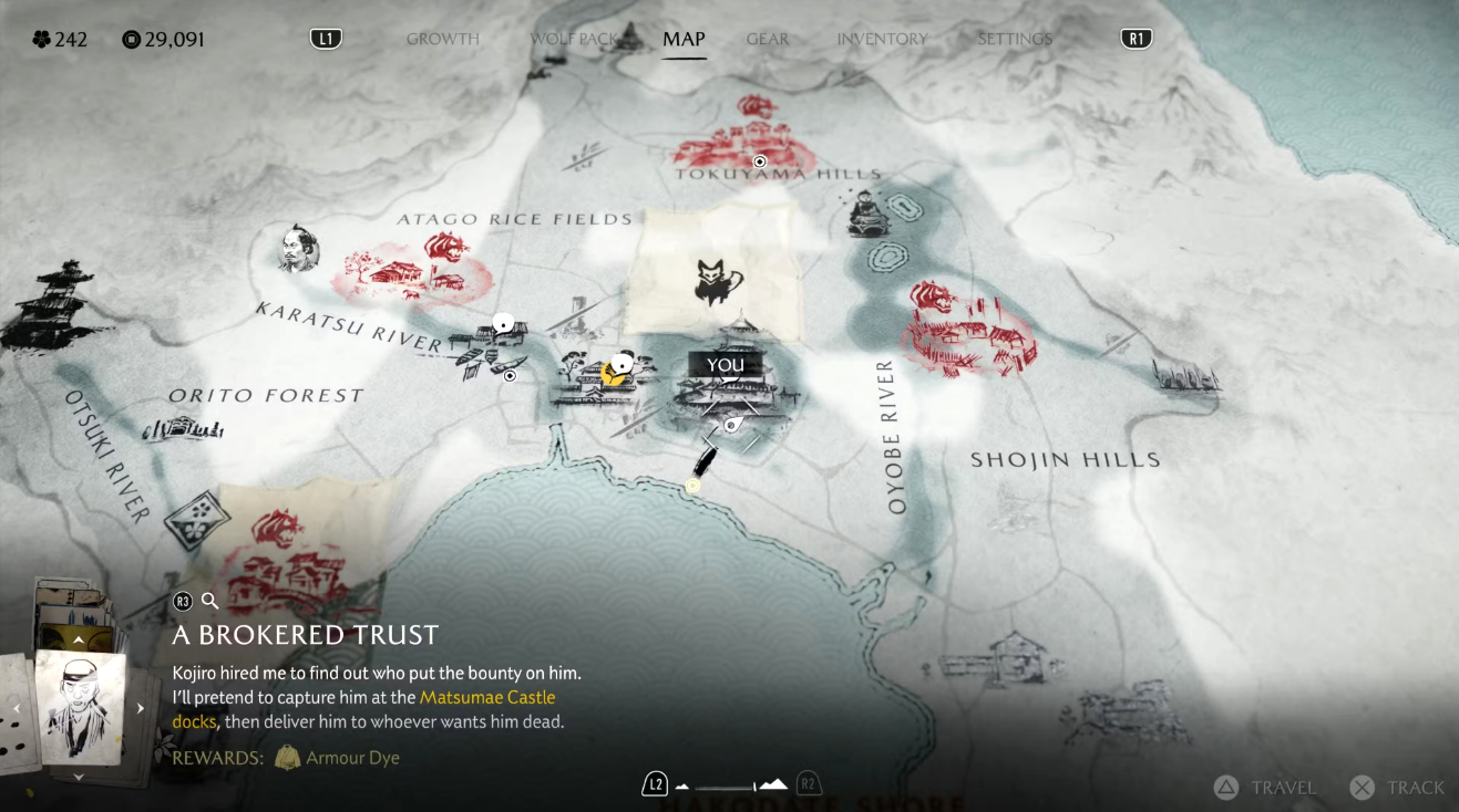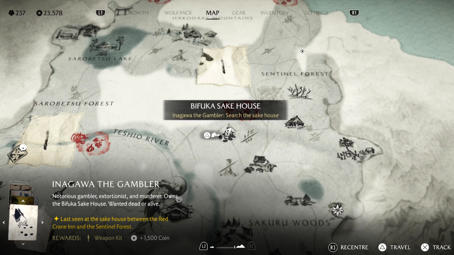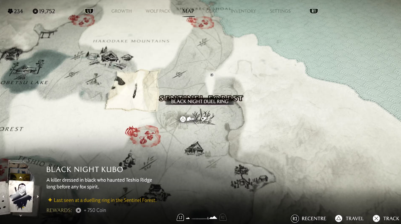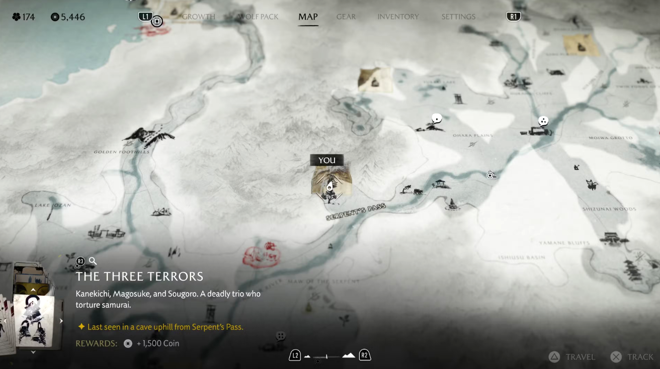 На доске объявлений замка Мацумаэ появится знакомый плакат с небрежно нарисованными очками. Чтобы начать задание, направляйтесь к югу от реки Оёбэ, к побережью, где вас встретит ронин. Он направит вас дальше — к югу от берега Хакодатэ, к дому Дикого Горо. Следуйте по цепочке заданий, чтобы завершить охоту и получить награду.