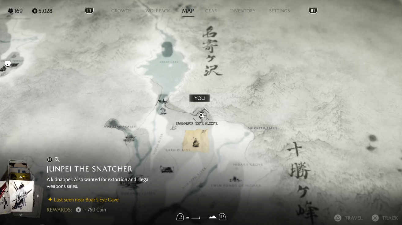 Чтобы выйти на похитителя Дзюнпэя, отправляйтесь к пещере Кабаний глаз в северной части хребта Токати. Вход в пещеру расположен чуть выше слова «Кабаний» на карте. Внутри вас ждёт сам Дзюнпэй похититель.