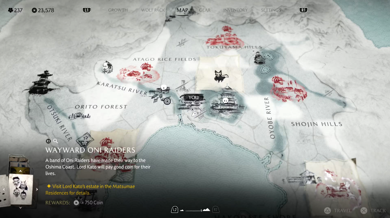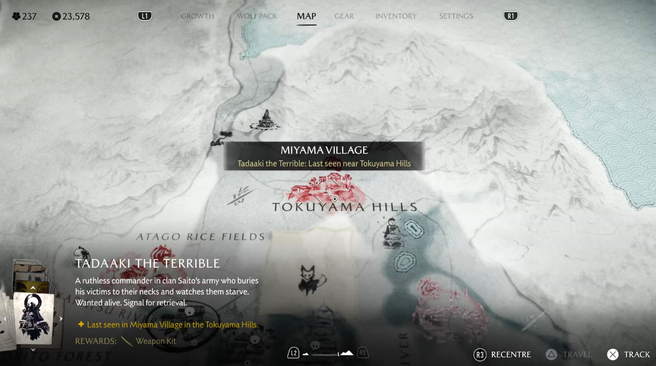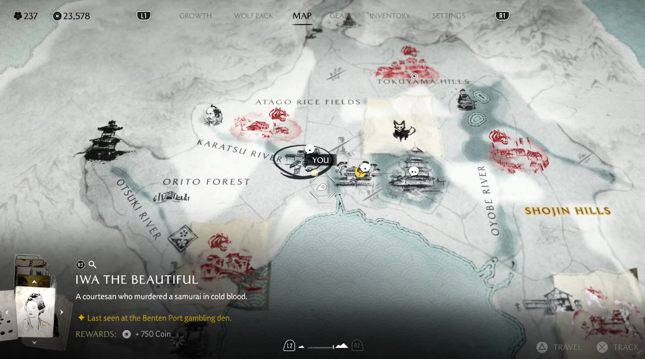 В Ghost of Yotei насчитывается 31 побочное поручение, посвящённое розыску и устранению разных преступников (с оговоркой: порой цели нужно не ликвидировать, а помочь им). Получить любой заказ можно в беседе с Кодзиро или при осмотре плакатов на деревянных досках в поселениях разных регионов. Кодзиро — тот самый персонаж, который выдаёт поручения и в большинстве случаев выплачивает Ацу награду за их выполнение (иногда вознаграждение выдается другими NPC).