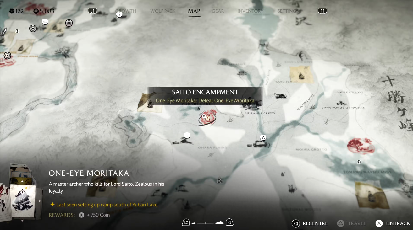Контракт на убийство Моритаки можно получить на доске объявлений в трактире «Приют Хурануи». Сам он обитает в лагере Сайто, к северу от равнин Охара и чуть южнее озера Юбарэ. Независимо от того, есть ли у вас сам заказ, вы можете отправиться туда и зачистить очередной лагерь Шестерых Изгоев, чтобы вызвать Моритаки на поединок.