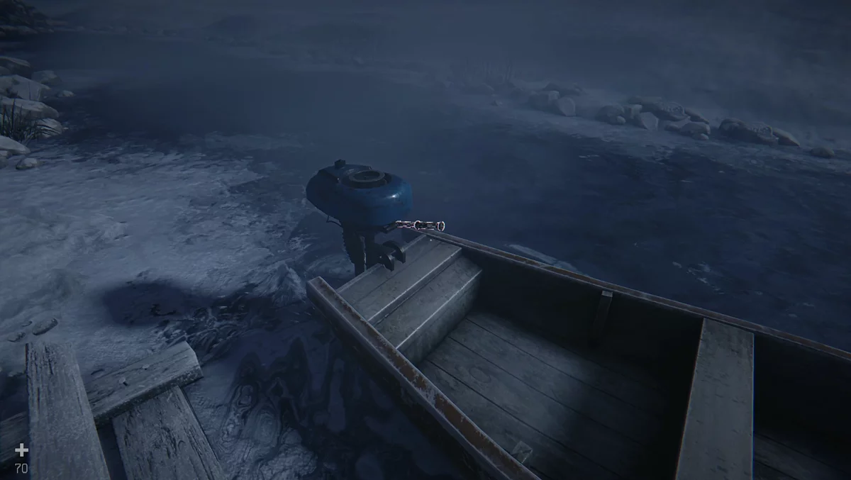 Покиньте дом через окно и по балкам перейдите в соседний. В небольшом строении рядом лежит канистра. Забравшись внутрь, соберите припасы и выйдите через парадную дверь. За зданием открылся проход к реке с моторной лодкой. Всё нужное уже у вас — установите детали. Нажмите на ручку мотора, чтобы сесть в лодку. Выйти из неё можно по красному флагу после парковки.