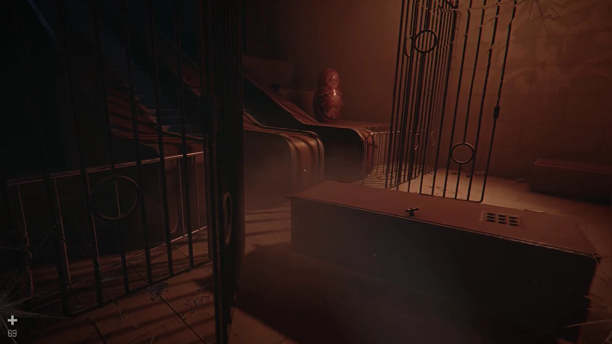 Придя в сознание в поле, бегите вперёд к красному зданию. Спустившись, попадёте в лиминальное пространство. Всегда держитесь левой стены. Можно подойти к плюшевому крокодилу Гене — так откроется достижение «Паранормальный предмет». В финальном лабиринте ориентируйтесь по чёрным следам на стенах и полу, затем прыгайте в чёрный квадратный провал.