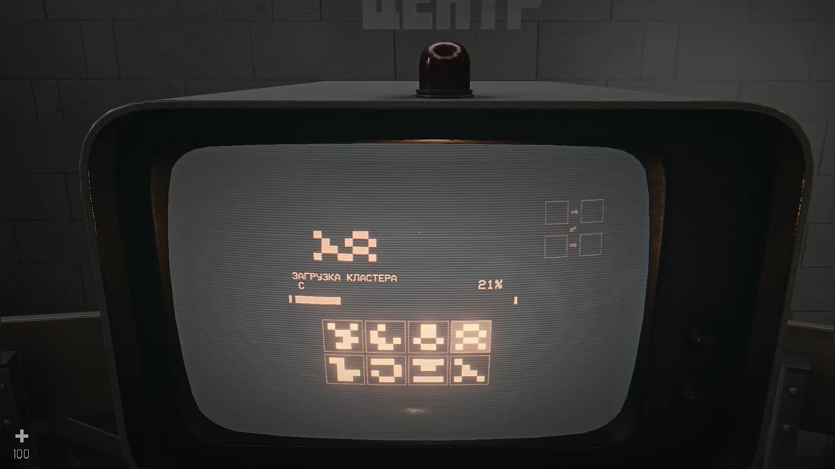 Запустится мини-игра: необходимо кликнуть четыре символа в правильном порядке — ориентируйтесь на изображение и подсказку справа на мониторе. Прослушайте все записи и возвращайтесь домой. На столе покрутите колесико мыши, чтобы сменить предмет, выберите магнитный ключ и подсоедините к нему дешифратор. Ещё раз осмотрите бункер, затем отключите питание у колонки. Посмотрите камеры и подойдите к выходу. Стартует катсцена, после которой Игнат выйдет через другую дверь.
