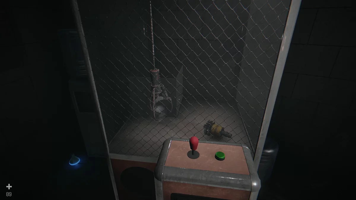 Продолжайте двигаться по коридору мимо рисунка с человеком. В комнате рядом найдёте люк в полу — его вскрывают слесарным ключом (по умолчанию клавиша «2»). Подойдите к замку и водите мышью влево-вправо, пока механизм не разблокируется, затем спрыгивайте вниз. Поверните налево и войдите в красную дверь. Здесь соберите продукты, детали и конденсатор. С этого момента можно подключаться к электроприборам и взаимодействовать с ними, расходуя заряд батарей.