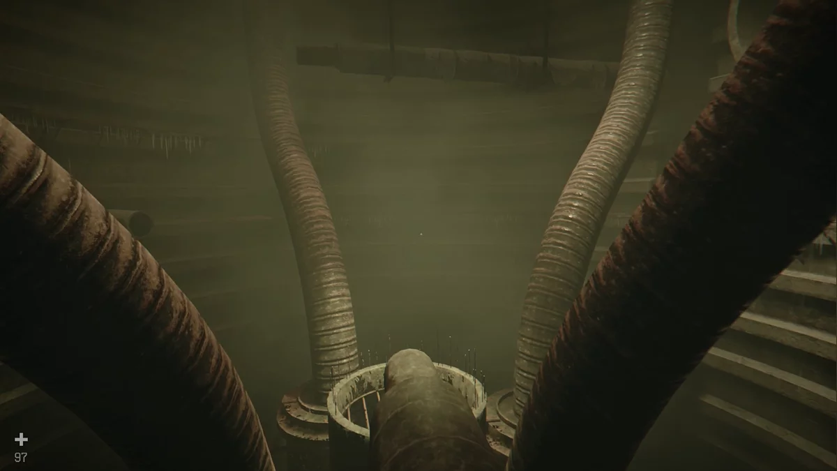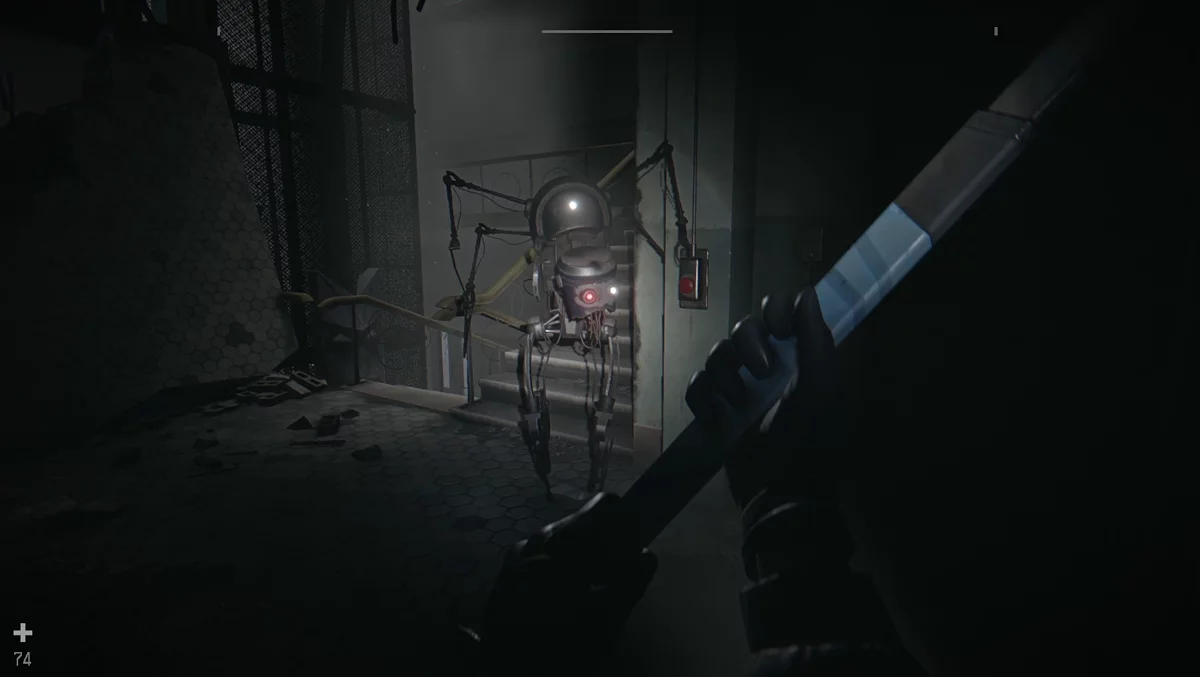 Спрыгивайте в комплекс и идите по коридору до лифта. Слева взломайте решётку вентиляции и пролезайте внутрь. Запустится катсцена, после которой Игнат потеряет дробовик. Продолжайте двигаться по вентиляции, пока не выйдете в просторный зал. Включится блокировка — нужно повернуть 5 рычагов. Для некоторых сперва нажмите на кабель, чтобы подать питание. Робот медлительный, времени хватает: активируйте элемент, спрячьтесь за ним и бегите к следующему, когда босс приблизится.
