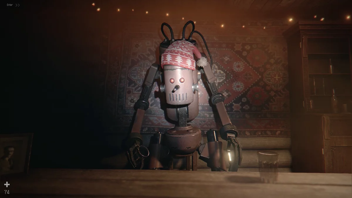 В награду получите газ для зажигалки, патроны и инъектор. Сама зажигалка лежит тут же на подоконнике. Дрова ищите в коридоре дома с печью. Собрав всё, откройте вытяжку у печи и подожгите дрова. Ночью начнётся бой с роботом. Стреляйте в него из дробовика, а когда он оглушится (примерно после 5 выстрелов), добивайте ключом.