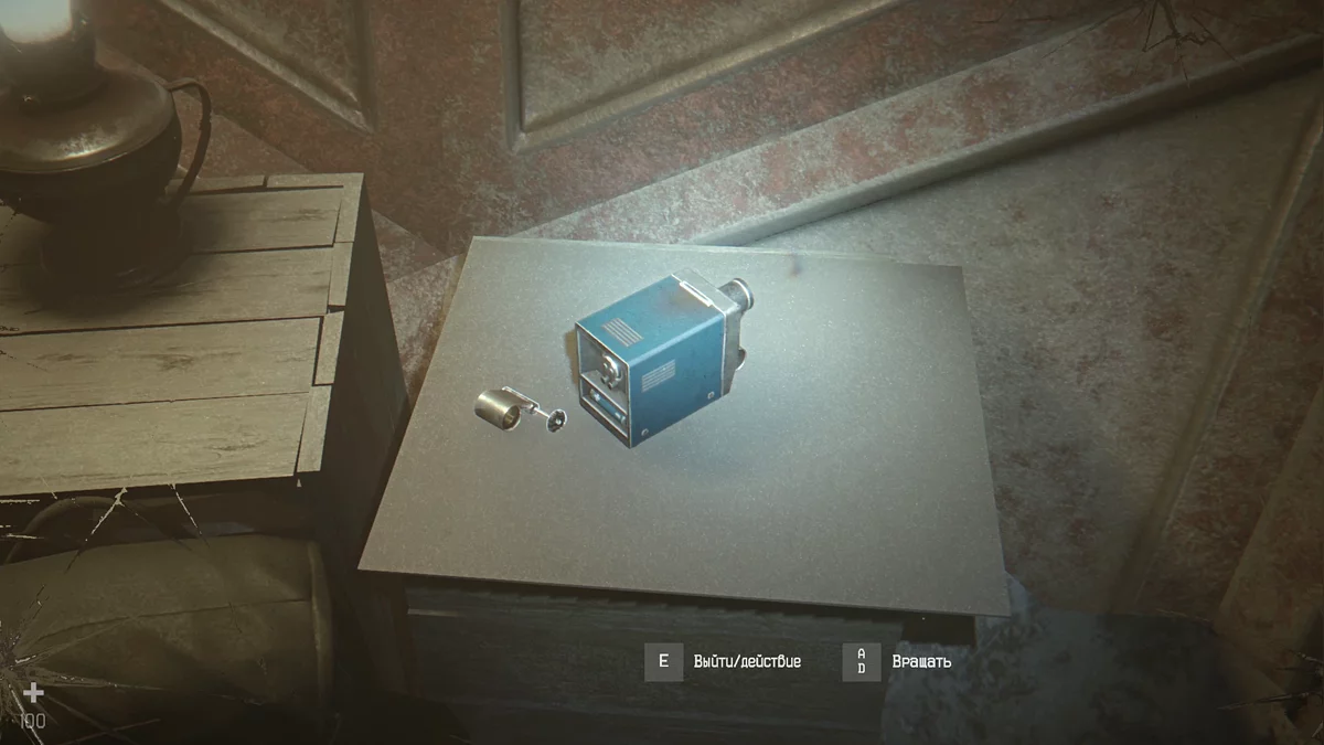 Зажгите лампу, осмотритесь и попробуйте выйти. После диалога откройте рюкзак и соберите фильмоскоп. Установите элементы правильно и переключайте слайды верхним тумблером.