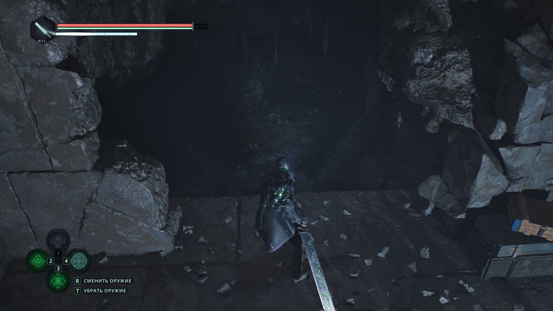 Продвигаясь по туннелю, в какой-то момент вы наткнетесь на пролом в стене, за которым есть пещера.