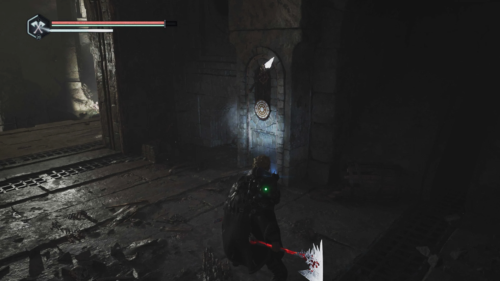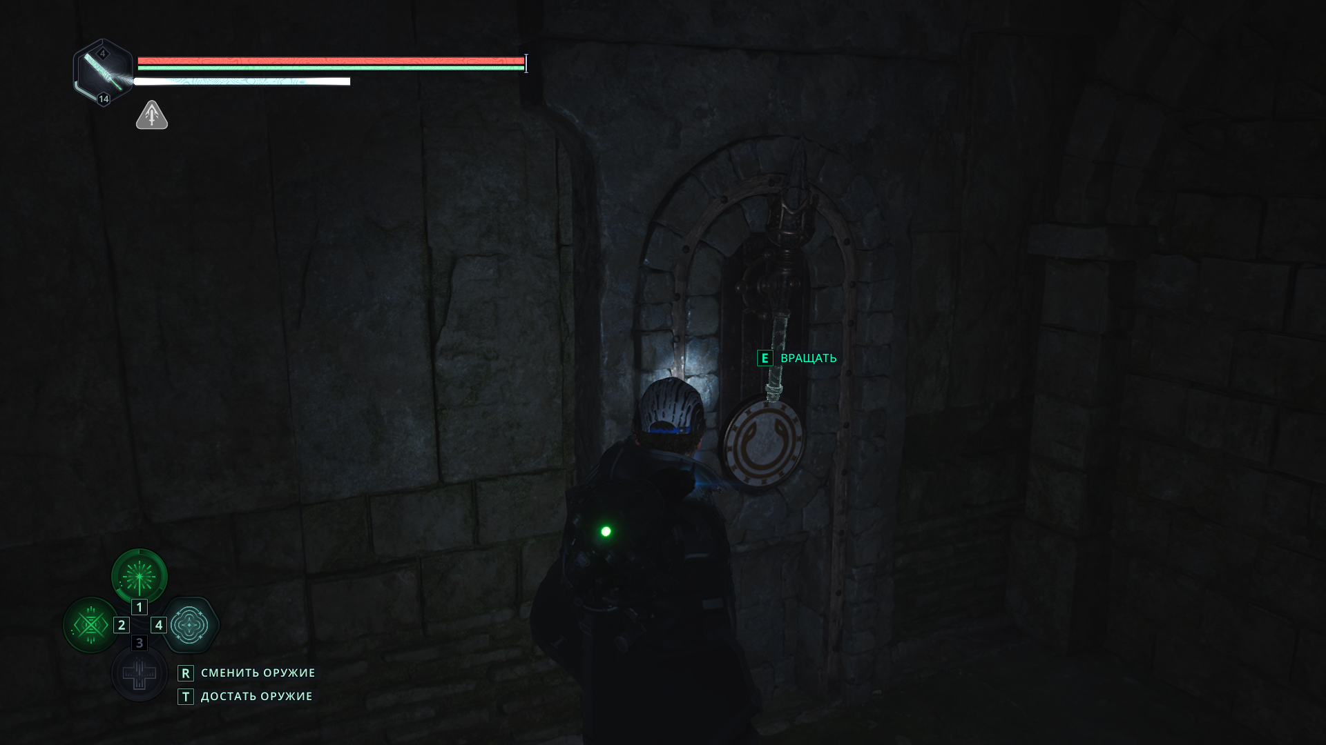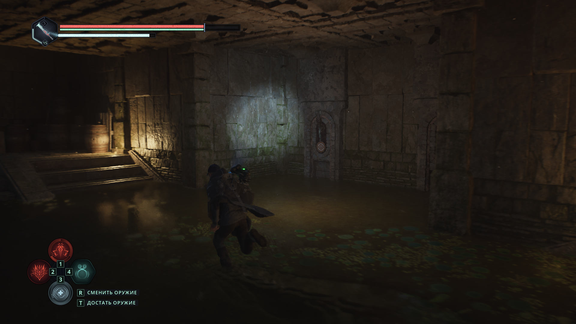 Однако сейчас вам нужно в другую сторону, так что развернитесь от двери и идите ко второй лестнице, которая ведет на нижний уровень подземелья.