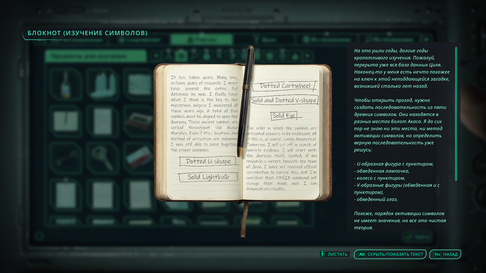 Иными словами, записи из найденного блокнота подсказывают, что предстоит как-то взаимодействовать с пятью символами, скрытыми на болотах Акаса: