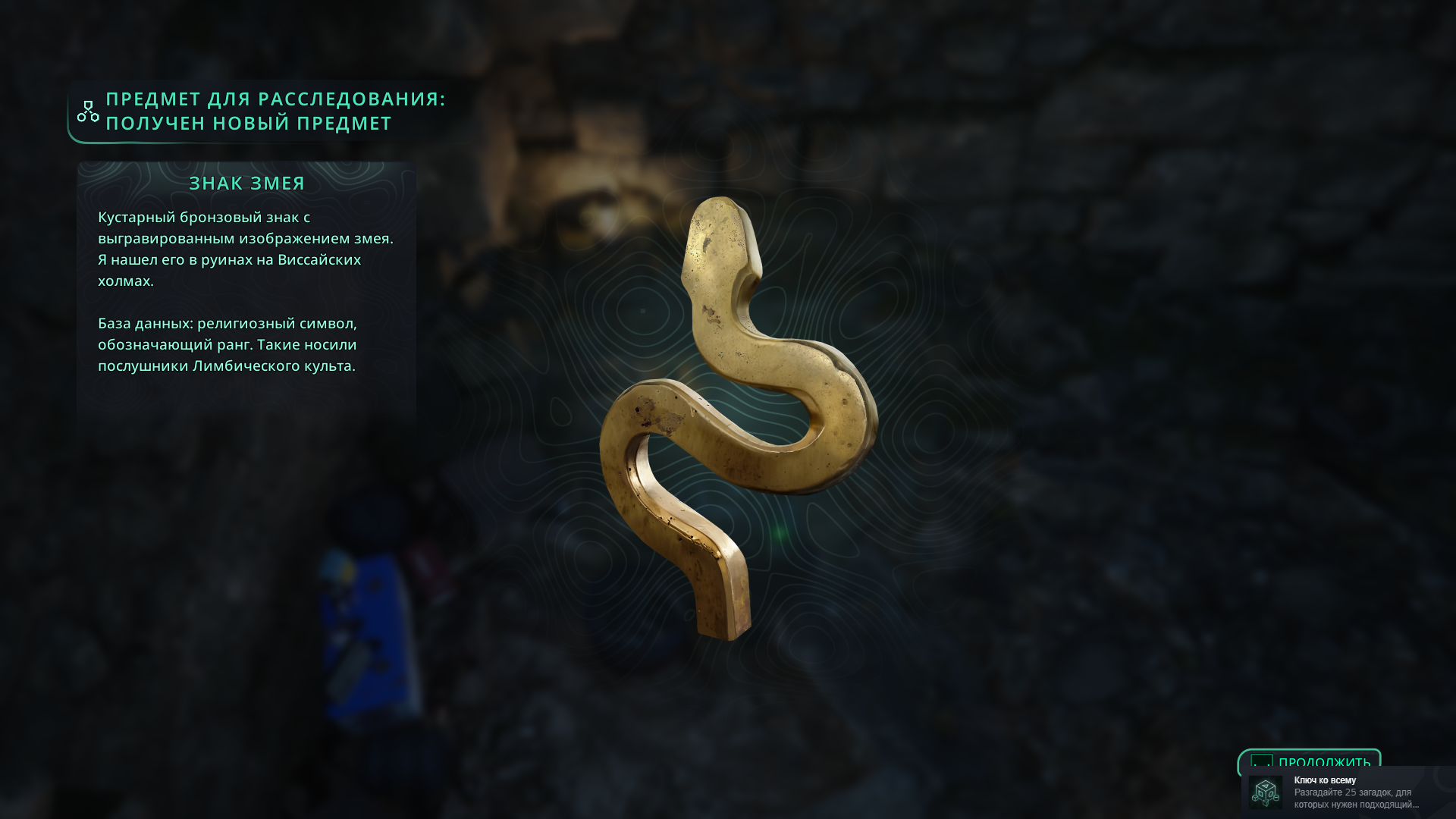 Так вы получите искомую книгу 📕, намекающую на древнее святилище в Виссайских холмах, а также любопытную реликвию в форме двуглавого змея.