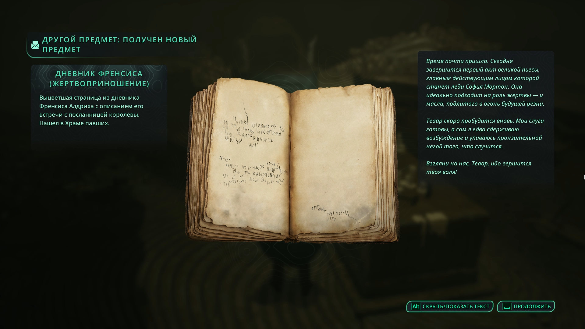 Если такой возможности нет, не переживайте 😊: за уничтожение временной петли вы получите лишь дневник 📔 с описанием жертвоприношения.