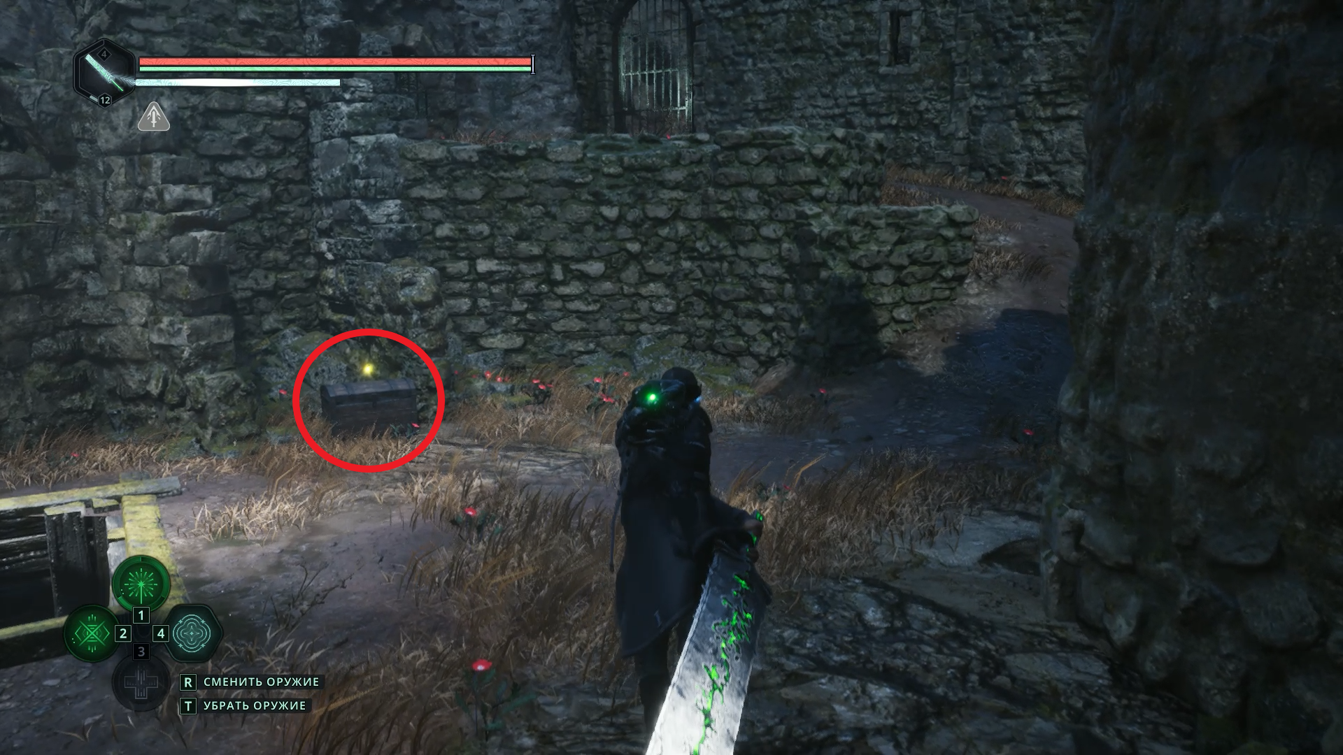 Останется забрать Знак Ладони ✋ из сундука в руинах слева и открыть им дверь справа.