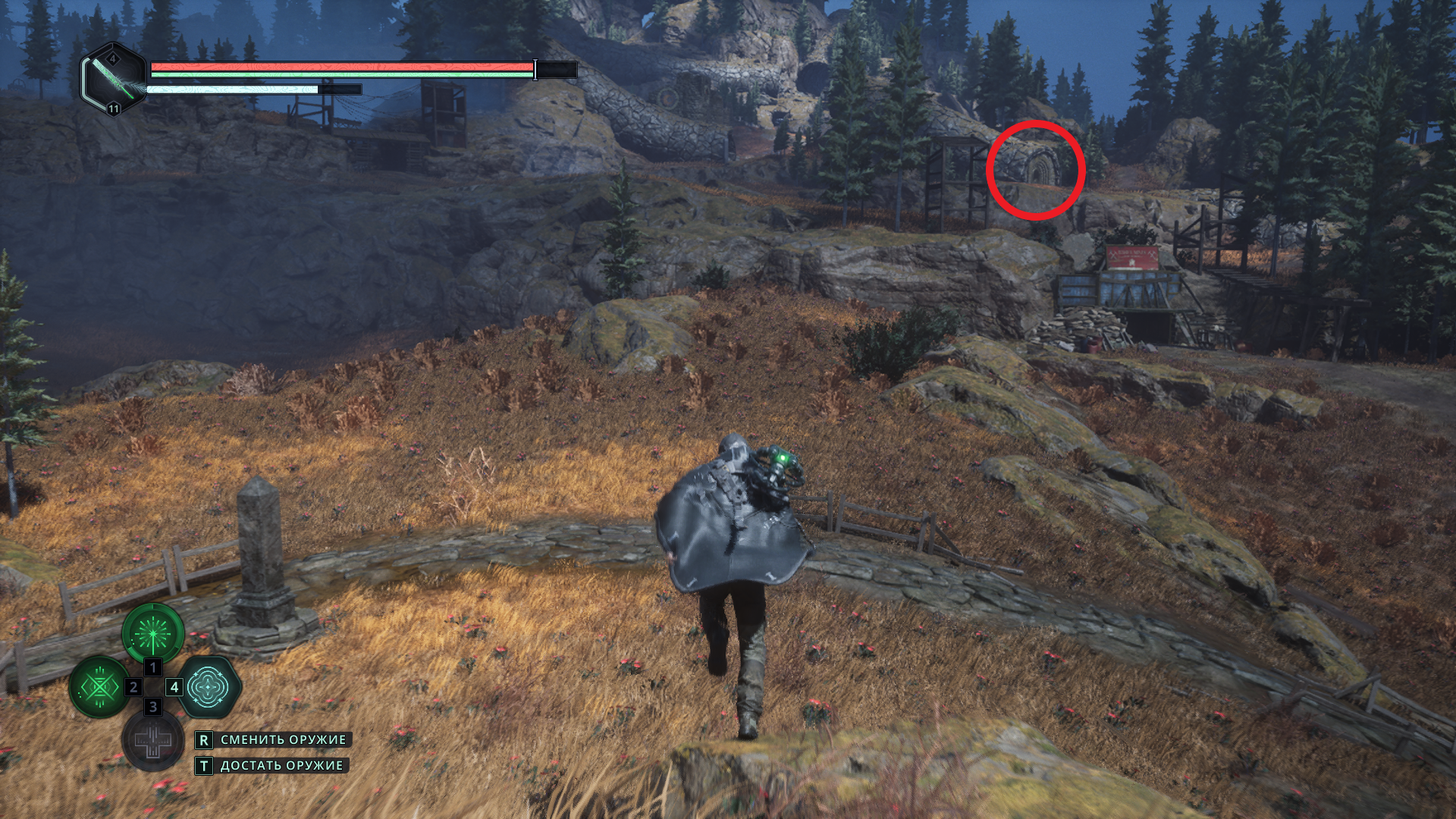 Он буквально в паре шагов 👣 — в соседних руинах. Но вход туда закрыт, а найденный рядом ключ подходит к дверям в шахтах.