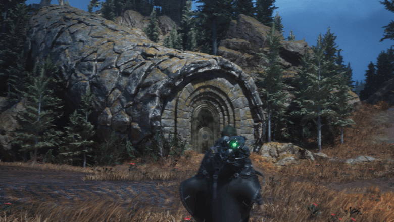 Следующим шагом будет прохождение так называемого Пути Змея. Скорее всего, вы уже видели это массивное каменное строение ⛩️ — тоннель с загадочной дверью — когда впервые попали в Виссайские холмы.
