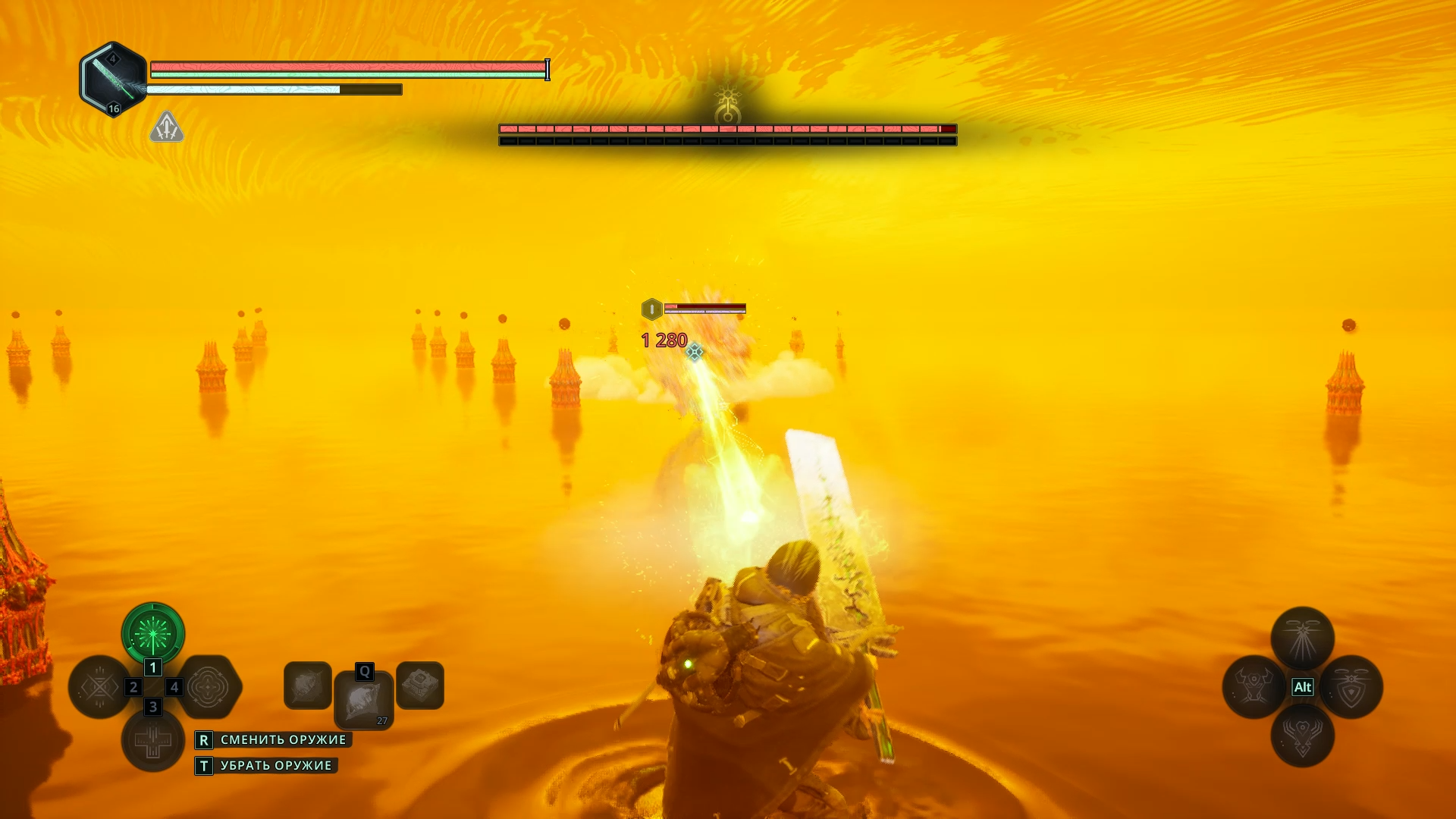 Разумеется, одной сферой дело не ограничится: вам придется уничтожить множество ее реинкарнаций 🔄, а также кристаллы и колонны, которые в определенный момент начнут выпускать снаряды 💫