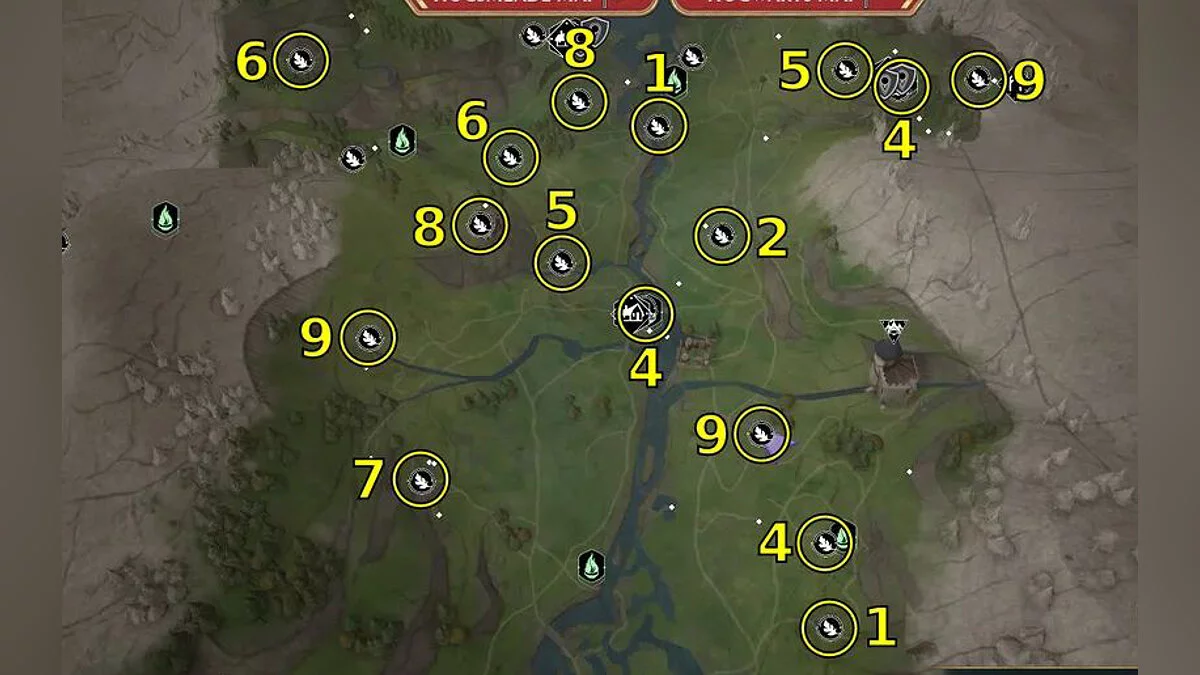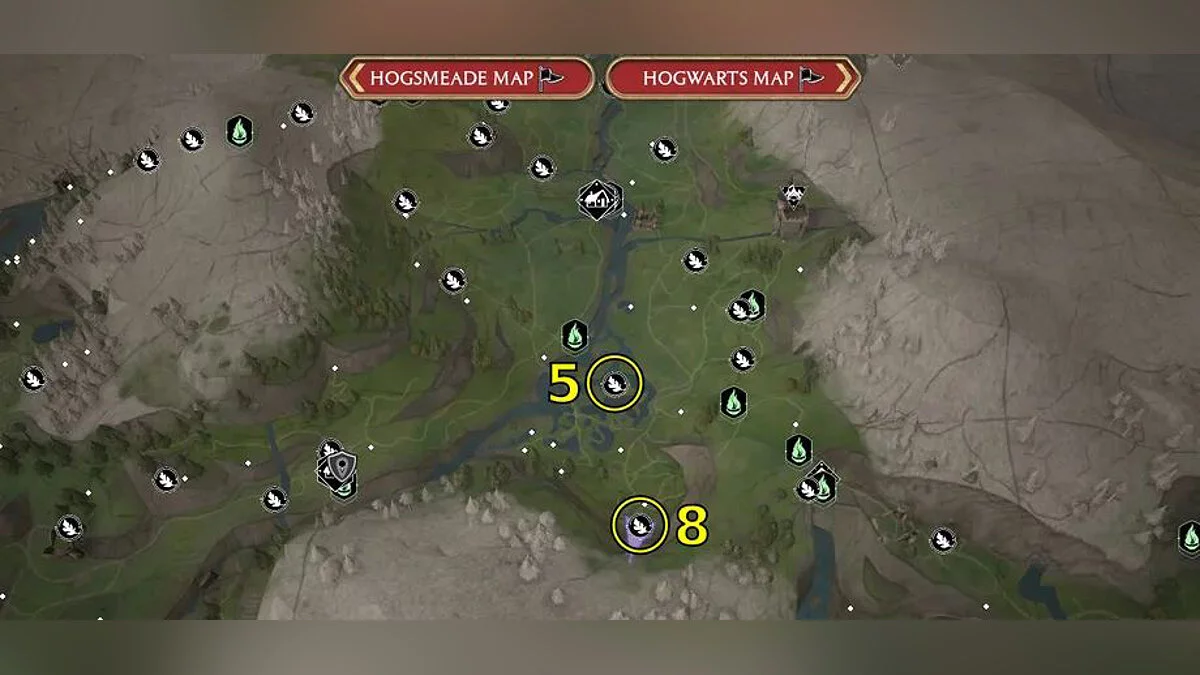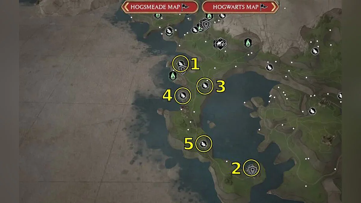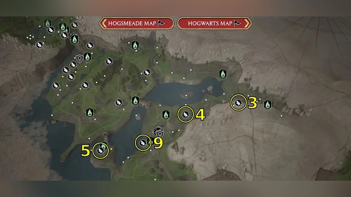 Ориентируйтесь по картам ниже, чтобы найти все 95 испытаний Мерлина в Hogwarts Legacy. Номер на карте соответствует типу головоломки.