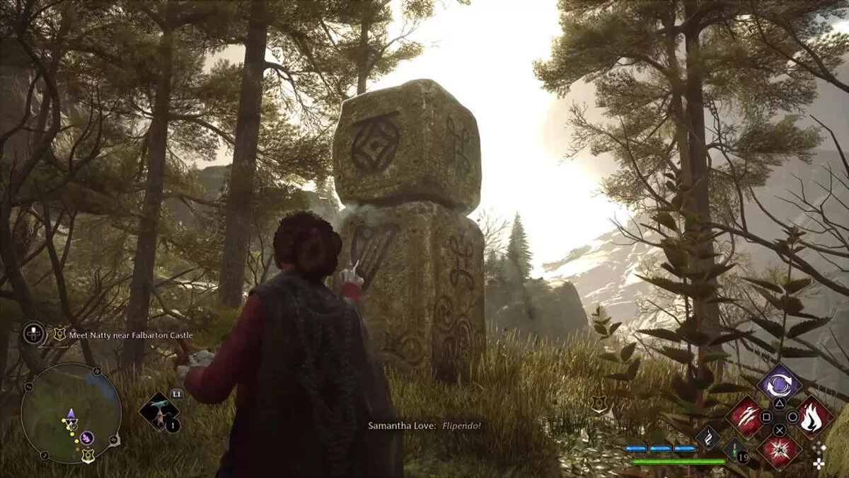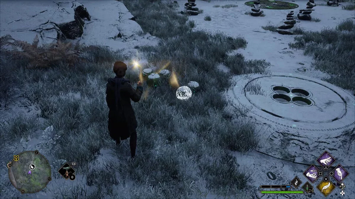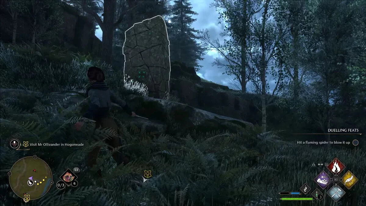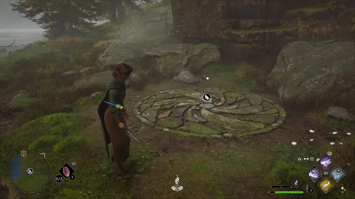 На местности ориентируйтесь на декоративные каменные круги с лепестками. Примените Ревелио (Revelio), чтобы они подсветились другим цветом.