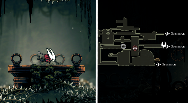 Иглончель лежит в Звонвилле (Bellhart), однако попасть туда нельзя, пока вы не получите Цепкий захват (Cling Grip) – умение прыгать по стенам. Этот навык добывается в соседней области Панцирный лес.