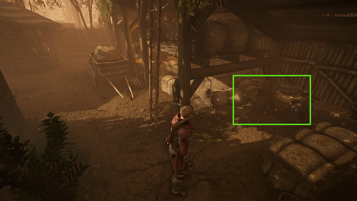 Искать улики лучше начинать в лагере при дневном свете. Идите к навесу слева и среди тюков найдите бутылки с алкоголем. Здесь же есть лежанка, на которой можно подождать до утра ⏰
