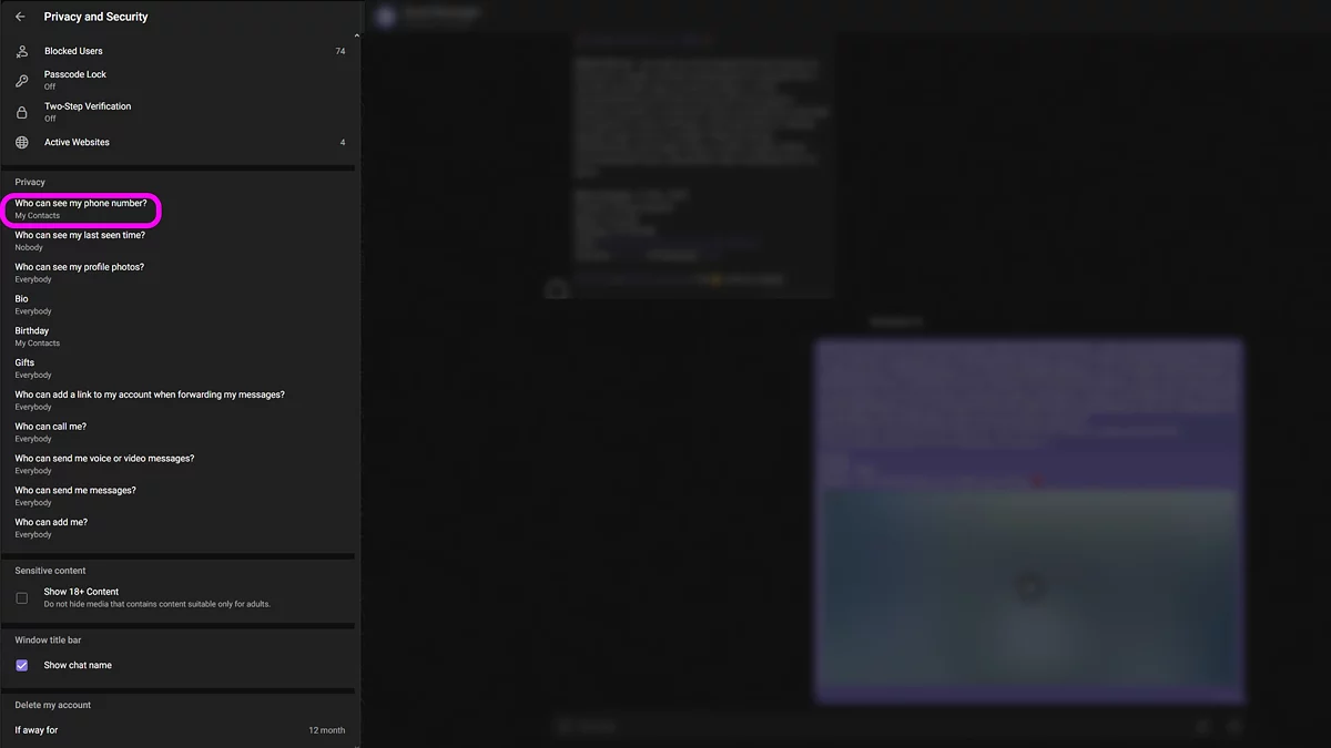 Как спрятать номер телефона в Telegram на ПК