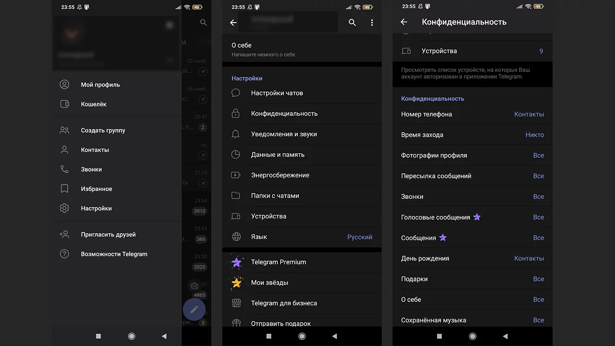 Как скрыть номер телефона в Telegram на смартфоне