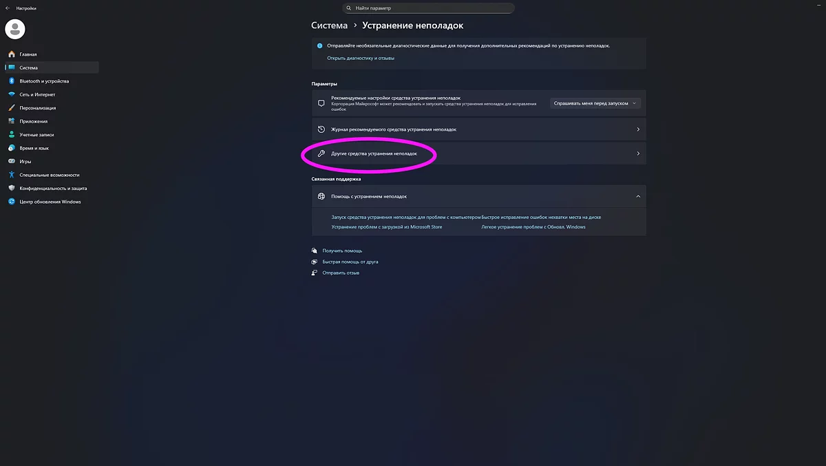 Для этого откройте следующие разделы: «Система» — «Устранение неполадок» — «Другие средства устранения неполадок» — «Средство устранения проблем с совместимостью программ». Запустите утилиту и выберите нужную игру; если её нет в списке, добавьте её вручную через специальную опцию. Инструмент подберёт корректные параметры, с которыми операционная система запустит старое приложение.