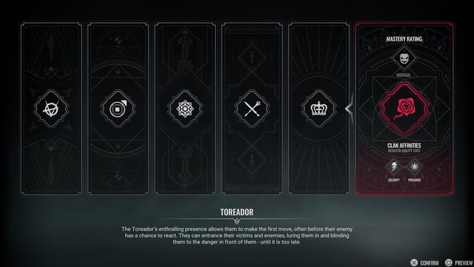 - Официальный синопсис: гипнотическое очарование тореадоров позволяет им начать первыми — прежде чем враг осознает угрозу. Они умеют пленять и жертв, и противников, лишая их способности распознать смертельную опасность прямо перед собой.