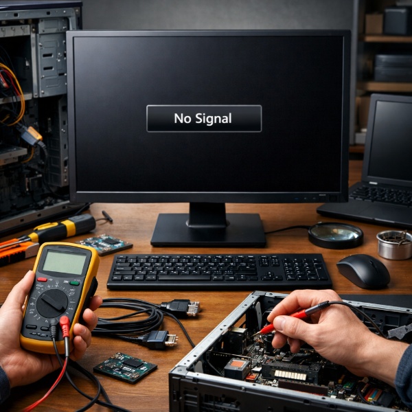 Причины отсутствия изображения: проверка питания и кабелей, устранение No Signal, диагностика видеокарты и подсветки, когда идти в сервис 🖥️