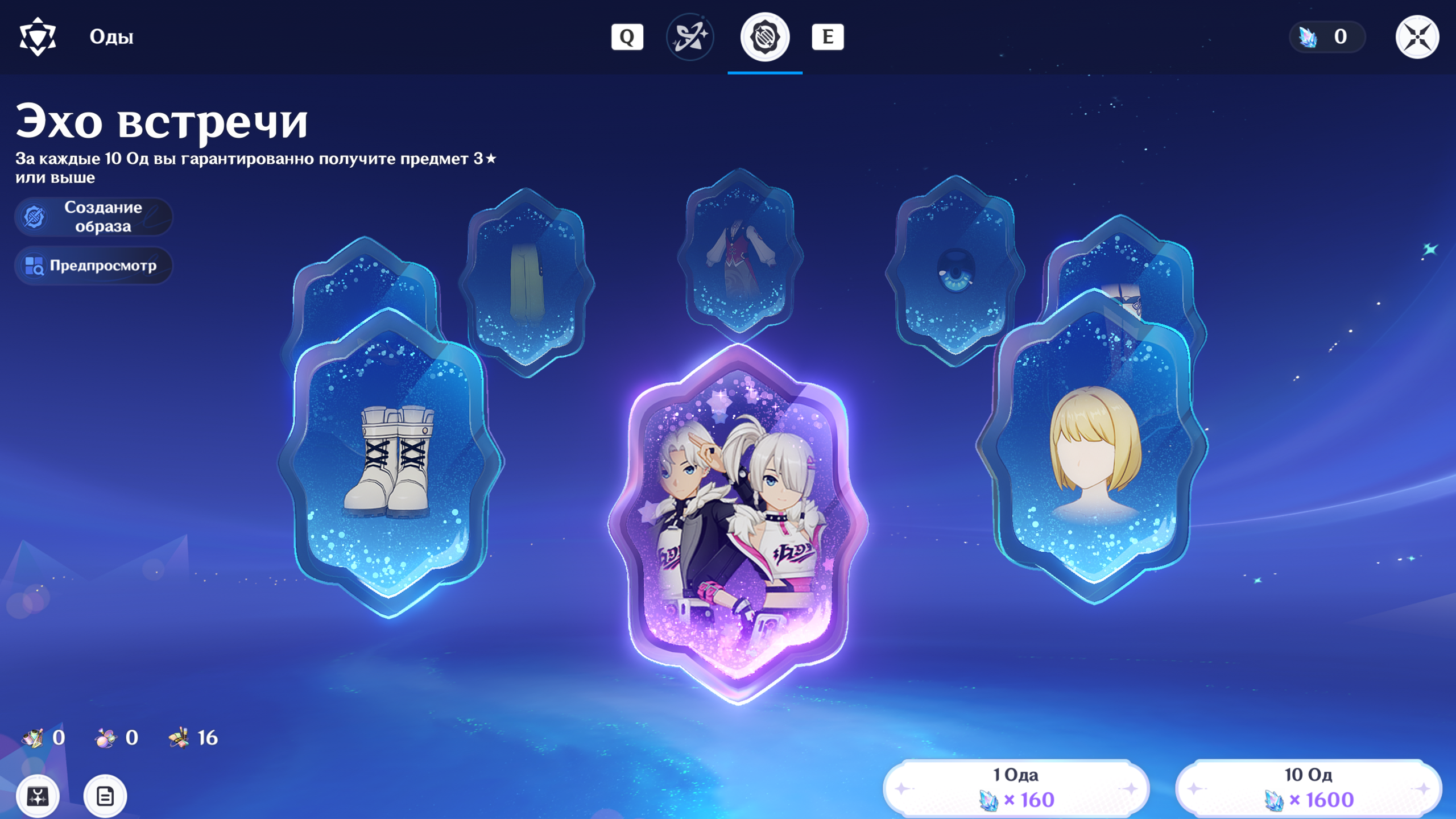 Активна постоянно. Здесь доступны только редкие и элитные предметы (до 4★). Легендарные 5★ наряды в пул не входят, однако дубликаты не пропадают: их можно направить на улучшение образов или обмен 💎.