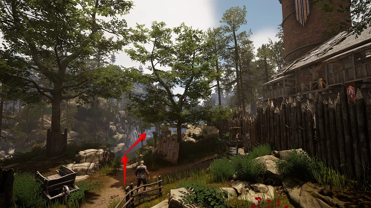 Здесь находятся доска заданий, лесная таверна «Брат короля», где можно переночевать, и множество учителей. Чуть ниже от трактира есть пирс, у которого можно встретить Иржи, что согласится провести героя до Пригорода. Продолжайте идти вдоль реки на восток.