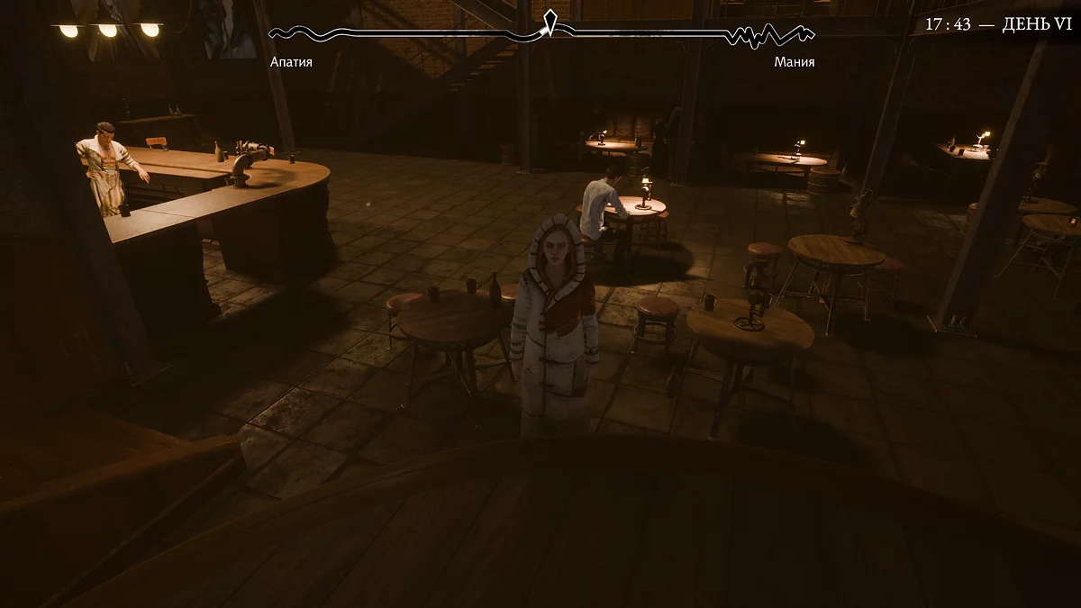 Проснувшись на шестой день, спуститесь по винтовой лестнице в главный зал. В кресле сидит женщина с темными волосами и черным ожерельем на шее. Это Катерина Сабурова — она напомнит, что вы уже встречались. Ее сильно тревожит судьба местных детей: они потерялись, и их давно не могут отыскать. Главной подозреваемой считается Анна Ангел, о которой ходят дурные слухи. Согласитесь помочь и направляйтесь к выходу из омута.